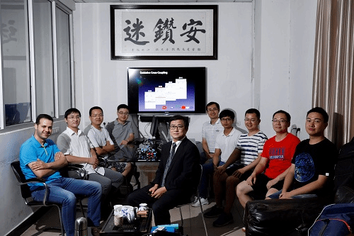 Aiwen Lei discussing new-type catalysis with his colleagues and students.