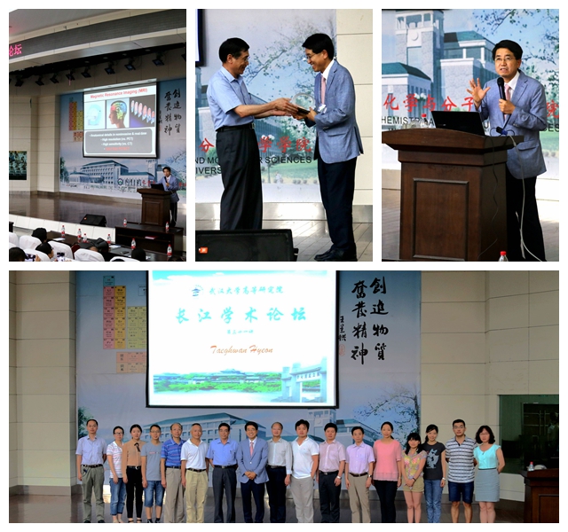 6月14日下午,国际纳米医药材料领域的国际顶尖专家和领军人物、韩国首尔国立大学教授、韩国翰林院院士、现担任韩国总统朴槿惠的科学顾问、化学领域顶级期刊Journal of American Chemical Society副主编玄泽焕(TaeghwanHyeon)教授受邀作客长江学术论坛第三十二讲,为全校师生带来一场题为Chemistry for Nano, and Nano for Medicine & Energy的精彩报告。生物医学分析化学教育部重点实验室主任、至尊国际 、化学与分子科学学院庞代文教授主持论坛,至尊国际 院长朱玉贤院士授纪念牌。相关专业师生两百余人认真听取了报告并参与了学术讨论。