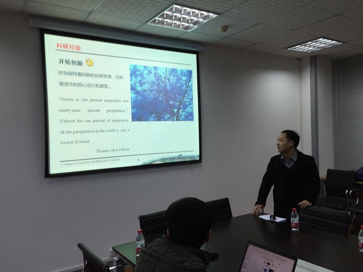 活动现场,同学们通过学术墙报的形式向大家展示自己的研究领域和兴趣方向。通过前期遴选,优中选优,邀请了部分同学以PPT讲解的形式向大家展示了自己的科研方向,包括:纳米催化剂的起始及发展、光催化在有机合成领域中应用、金属有机框架结构化合物的2D/3D框架结构和性能、超快泵浦探测技术等。围绕“纳米科学与催化”领域阐述自己的研究构想,包括构建光敏剂、质子还原催化剂、MOFs新型储氢材料的光催化有机合成体系的研究构想、针对惰性C-H键活化而发展新型廉价金属纳米催化剂的研究构想、利用局域表面等离激元效应来增强光催化效果的前景展望、MOFs&COFs在气体储存、催化等方面的应用前景的介绍等。