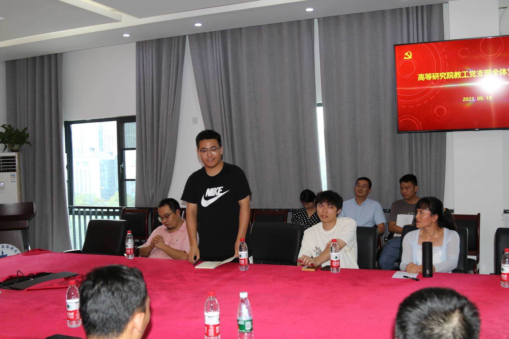 会上,党支部书记陈素明教授介绍了高研院党支部创建全省高校“双带头人”教师党支部书记工作室、争创学校样板党支部基本情况,7名新加入(转入)党支部的党员逐个作了自我介绍。