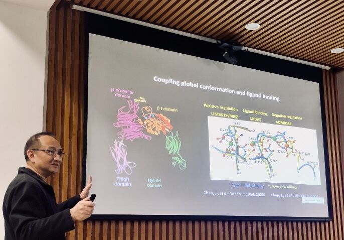 11月22日下午,中国科学院上海生物化学与细胞生物学研究所、分子细胞科学卓越创新中心研究员陈剑峰教授受邀做客至尊国际 长江学术论坛,作题为“整合素的双向活性调控与免疫细胞归巢”的学术报告,刘郑教授主持论坛,至尊国际 研究生会协助举办。