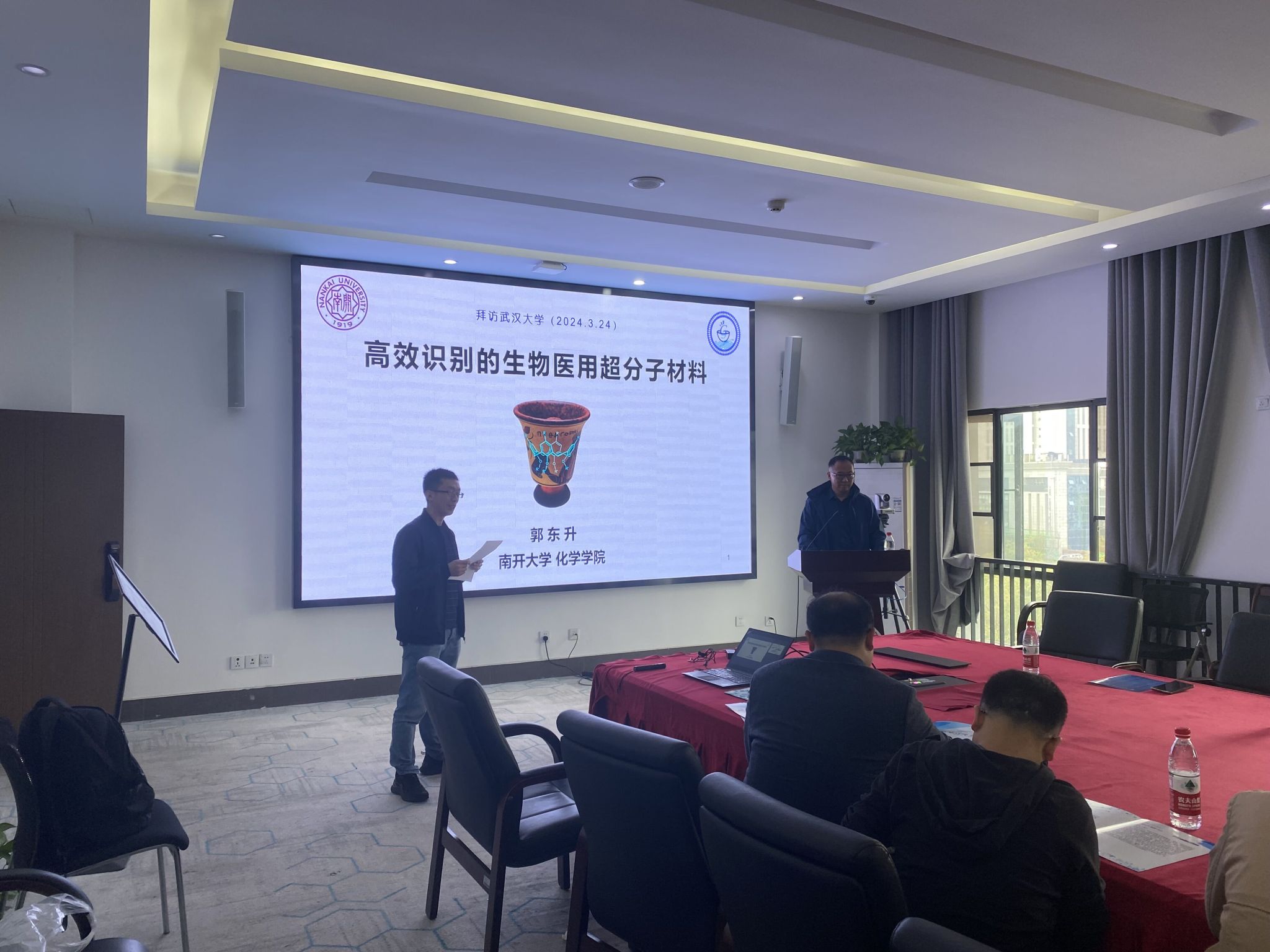 郭东升教授作题为“高效识别的生物医用超分子材料”的报告。郭东升教授以第三代超分子主体—杯芳烃为核心基元,分别从小分子药物、生物大分子、多样性生物分子三个方面对生物医用超分子材料的设计合成、高效识别及其所具有的生物医药功能进行了系统介绍。郭东升教授分享了如何通过纵向拓展空腔最终实现大环载体的定量药物负载和比例递送,介绍了共组装杂多价的新策略。这些生物医用超分子材料可以用于肿瘤和阿尔兹海默症等重大疾病的早期诊断、预防和治疗。郭东升教授还提出了超分子材料库的模块化构建。