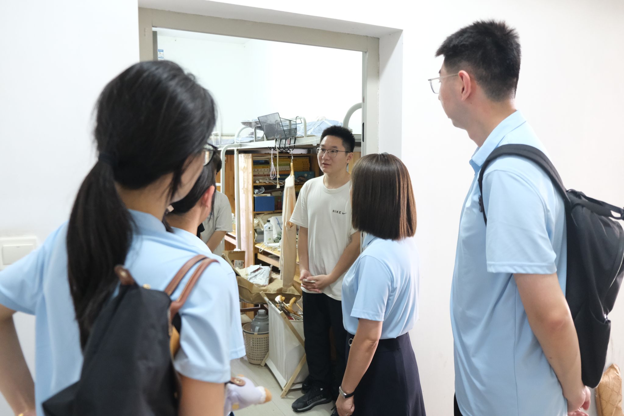 学院在新生报到第一天走访学生宿舍,了解新生们的需求,及时解决入住问题,传递学院关怀。
