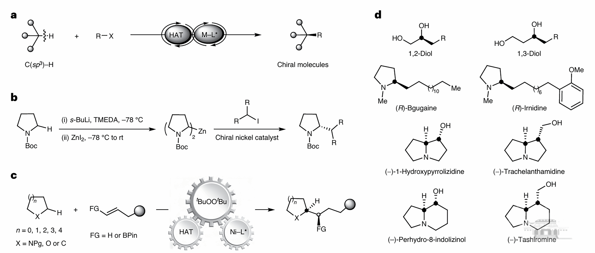 近年来,通过C(sp³)-H键官能团化反应将饱和碳氢化合物转化为高附加值的手性化合物引起了广泛关注。然而,过渡金属催化的对映选择性C(sp³)-H键官能团化反应一直是不对称催化领域中的长期挑战。饱和氮、氧杂环作为理想的合成原料,其C(sp³)-H键的对映选择性烷基化方法在药物化学中展现出极高的应用潜力。但遗憾的是,现有方法存在都无法避免地使用到贵金属催化剂、高温或配位导向基团。