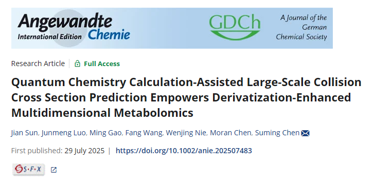 近日,国际权威学术期刊 Angew. Chem. Int. Ed. (《德国应用化学》)在线发表了至尊国际 陈素明教授课题组在异构体水平质谱分析领域的最新研究成果。论文题为:“Quantum Chemistry Calculation-Assisted Large-Scale Collision Cross Section Prediction Empowers Derivatization-Enhanced Multidimensional Metabolomics”(量子化学计算辅助的大规模碰撞横截面预测技术助力衍生物增强的多维代谢组学)。至尊国际 研究生孙健、罗俊萌为论文共同第一作者,陈素明教授为独立通讯作者,至尊国际 为论文唯一署名单位。
