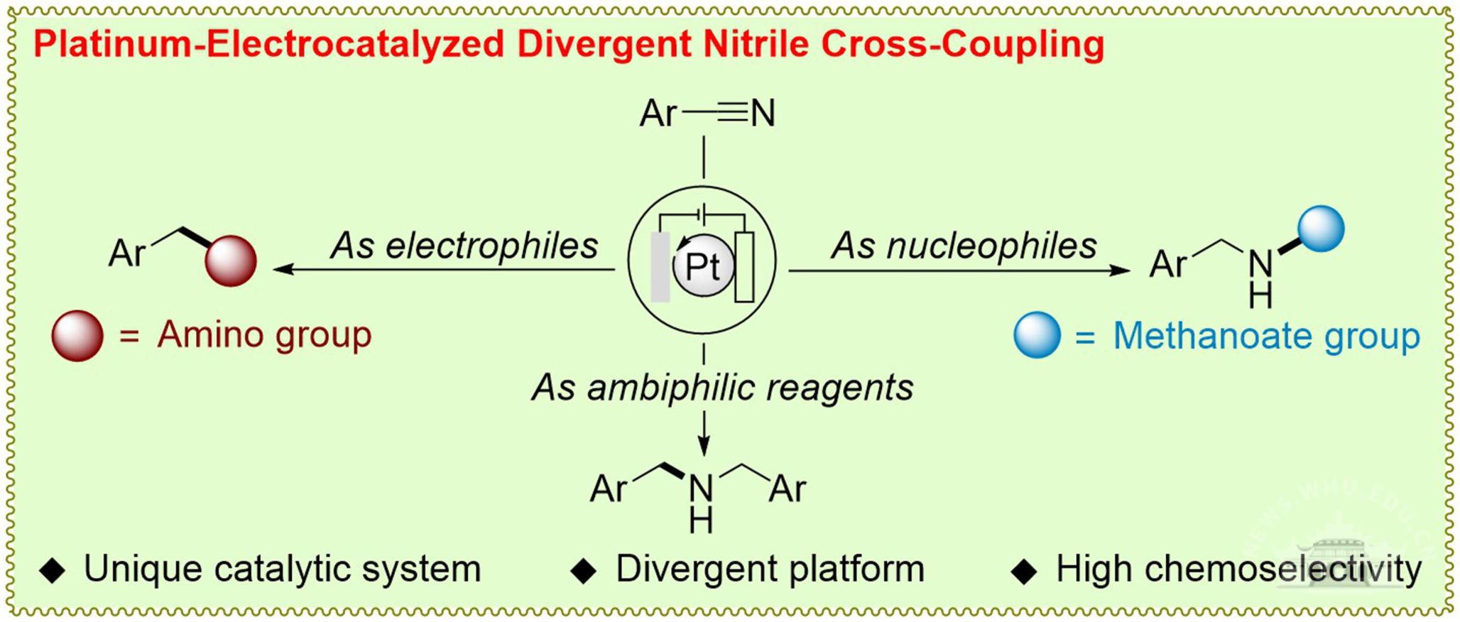 铂/电催化的腈类化合物的发散选择性还原交叉偶联反应