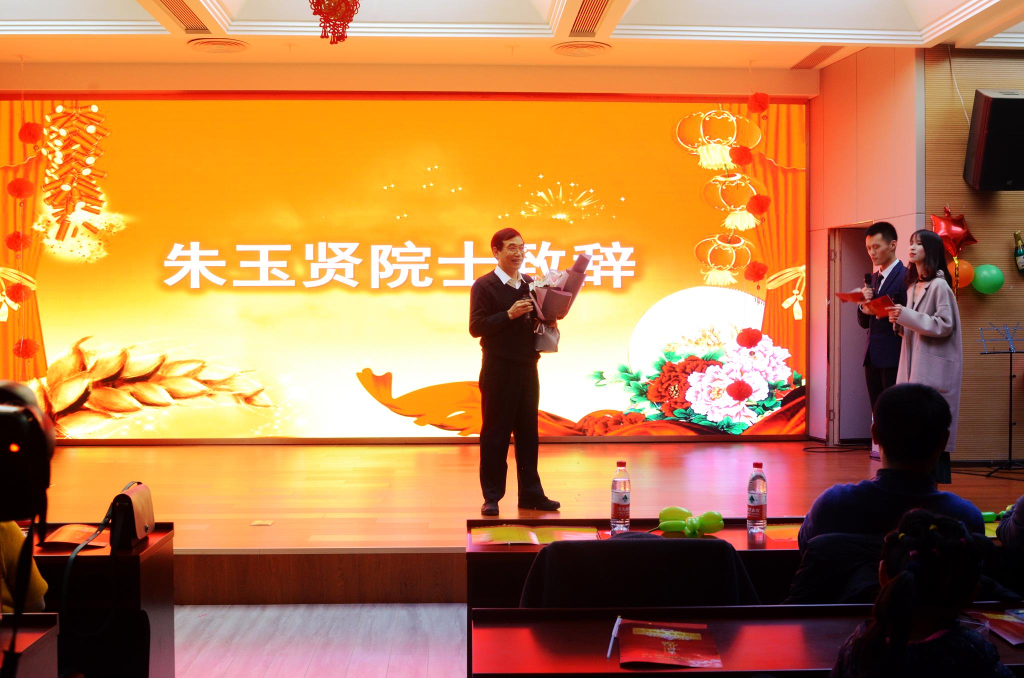 朱玉贤院士为师生们带来新年致辞,他指出,个人对自己未来的选择,要有一个明确的目标,做学问就是人生一条很好的道路,“自信人生三甲子,会当水击五千年”,寄语师生们事业、健康、家庭三不误,并祝大家元旦快乐!