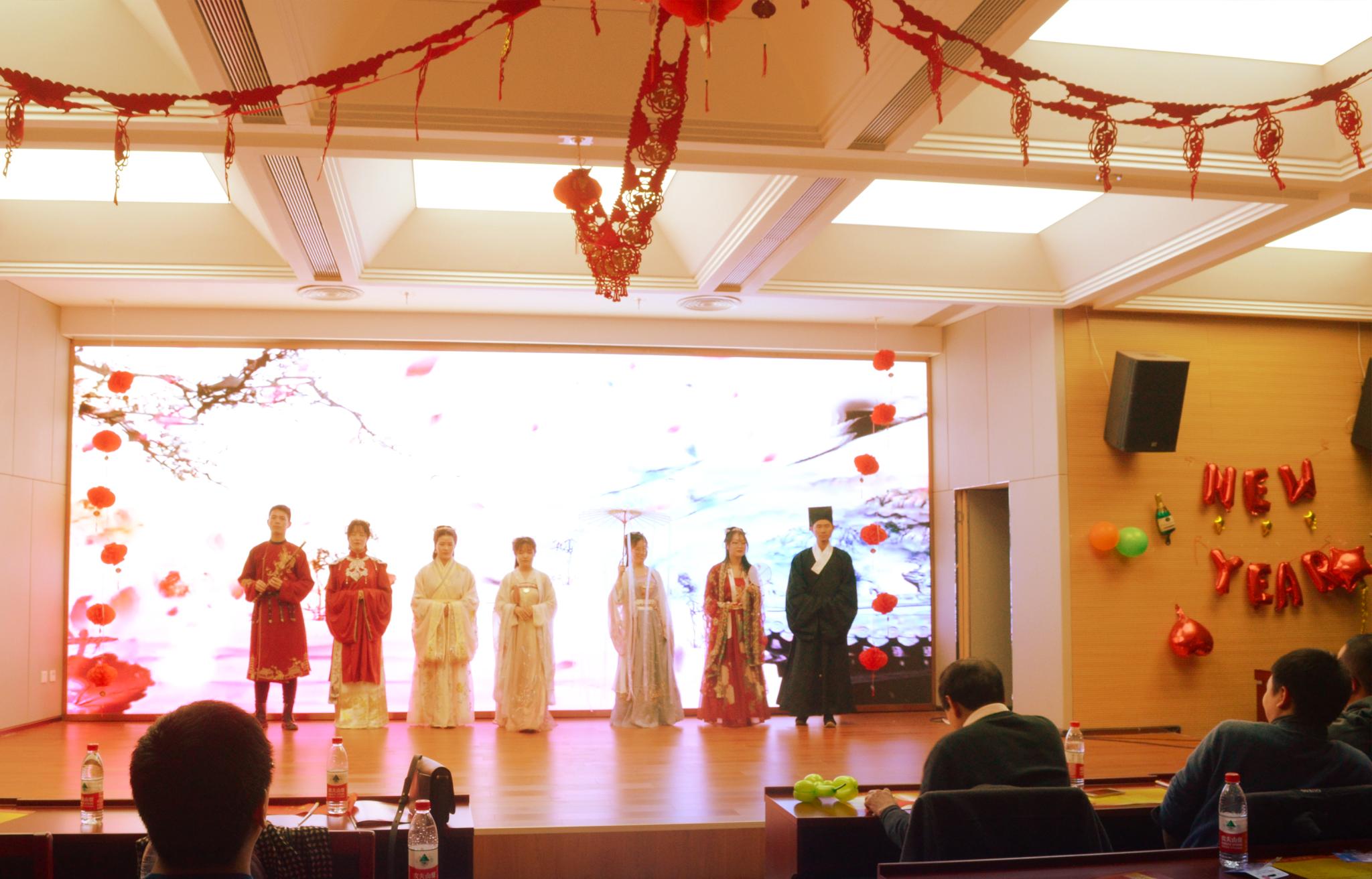 表演环节,既有劲歌热舞,又有风趣幽默的相声,更有展示传统文化的“汉服秀”。原创歌曲“你”、吉他弹唱“南方姑娘”、独唱“阴天快乐”和“世间美好与你环环相扣”,相声“满腹经纶”,极具古典特色的集体节目“汉服秀”,教师合唱“我相信”,学生合唱“我和我的祖国”,一个个节目精彩纷呈,响起阵阵热烈的掌声。