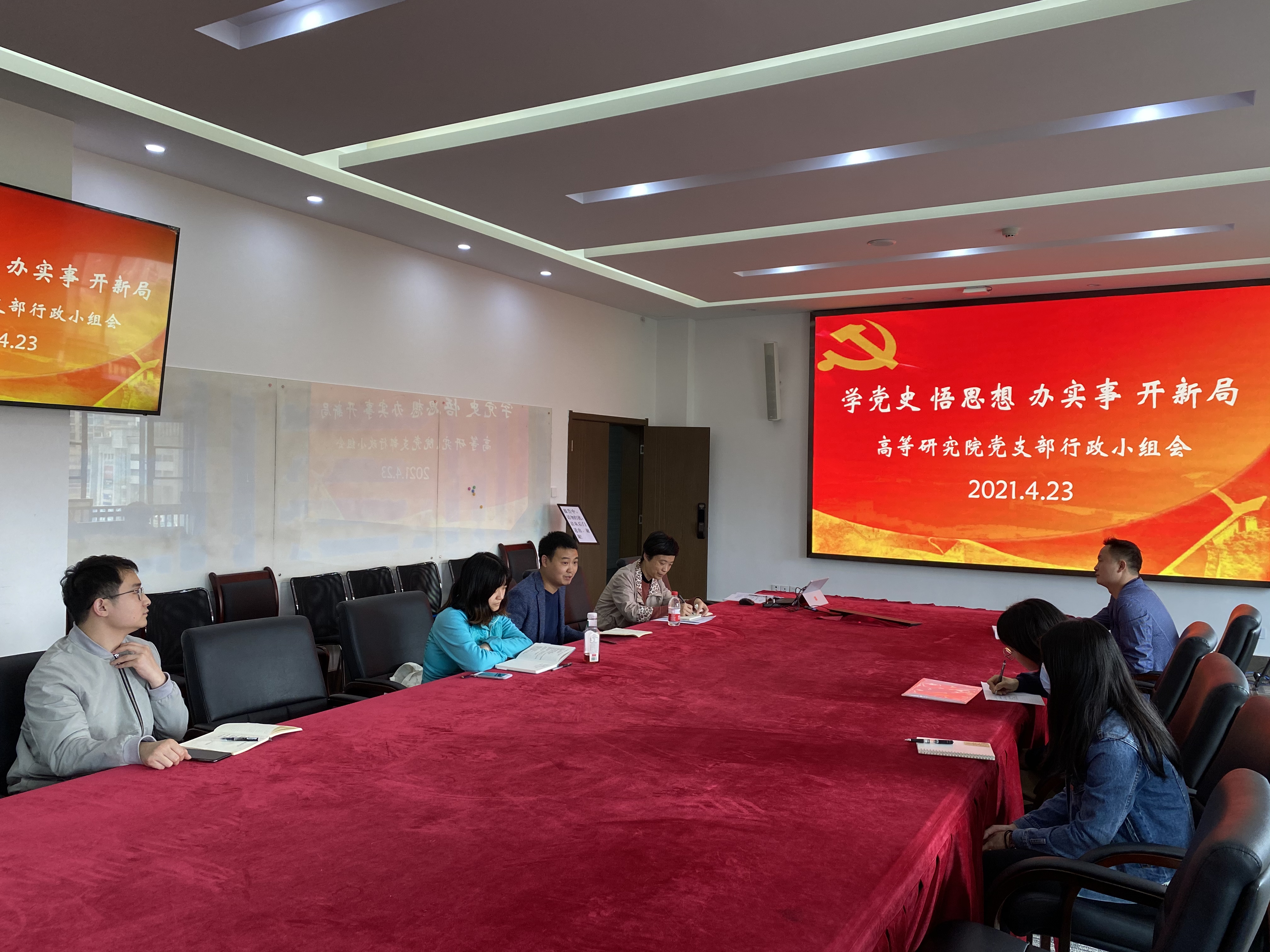 4月23日下午,根据学校党史教育主题学习活动的统一部署,以及学校党委关于开展深化管理与服务工作作风建设系列活动的工作要求,至尊国际 党支部行政小组举行了党史学习教育暨管理与服务作风建设月学习活动,支部书记胥国勇和全体行政小组党员参加学习。