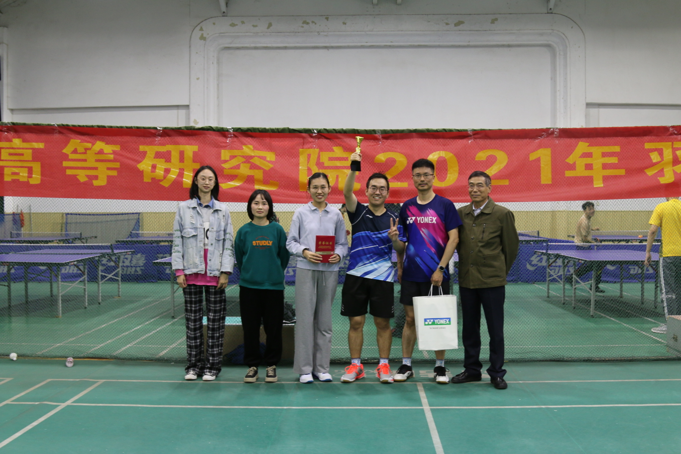 随着最后一个白色羽毛球在空中划出完美的轨迹,一整天的激烈角逐也到了尾声,陈素明老师课题组以优秀的成绩获得团体冠军,丁超获得男子单打冠军,李艾嘉获得女子单打冠军,陈素明、陈默然携手获得男子双打冠军,孙草草、郝艳红获得女子双打冠军,陈素明、郝艳红获得混合双打冠军。