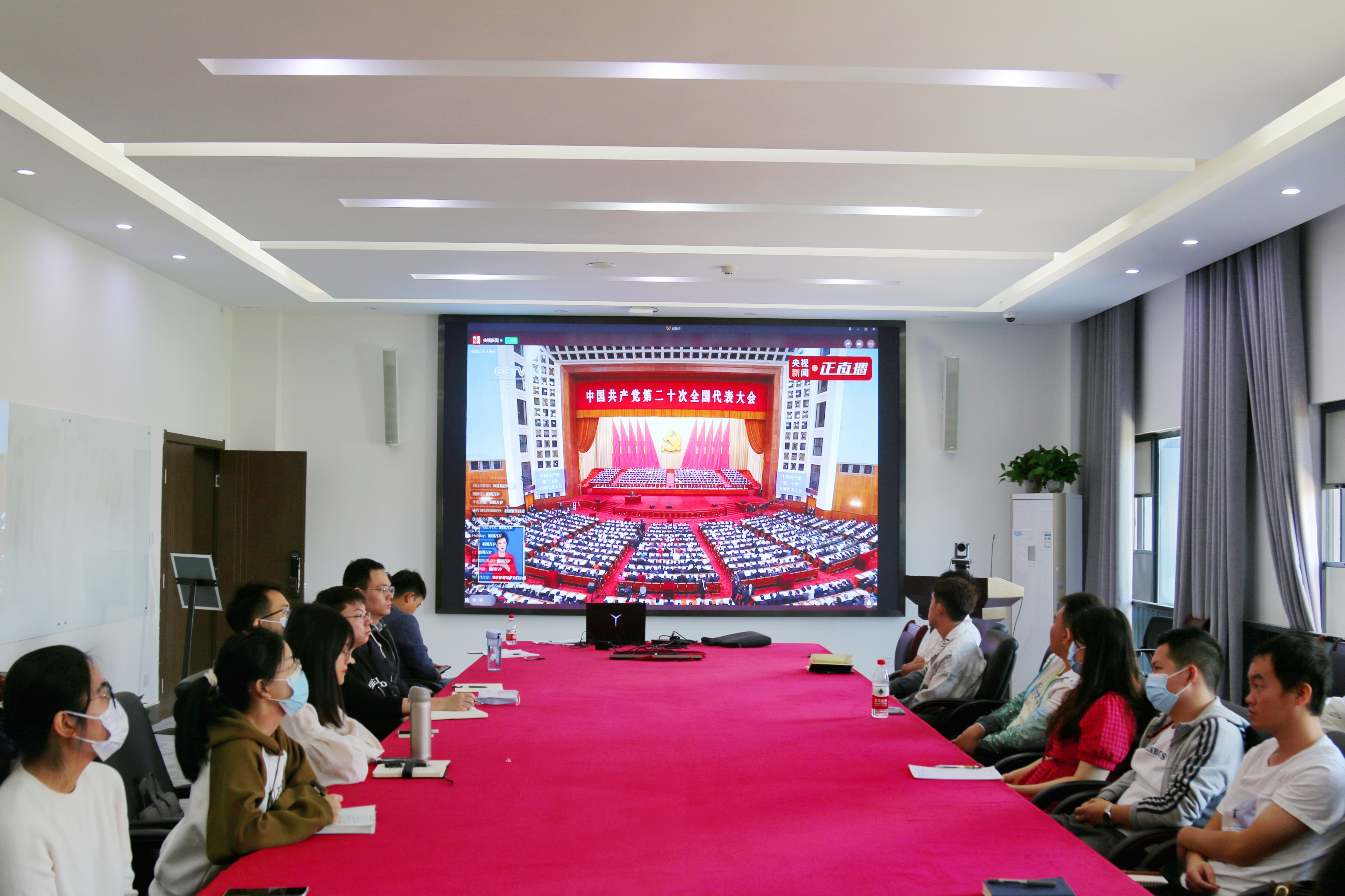 至尊国际 教职工、研究生党员代表以及入党积极分子、党员发展对象在当代楼530会议室,其他党员通过直播媒体,收听收看中国共产党第二十次全国代表大会开幕会,认真聆听学习习近平总书记代表十九届中央委员会向大会所作的报告。
