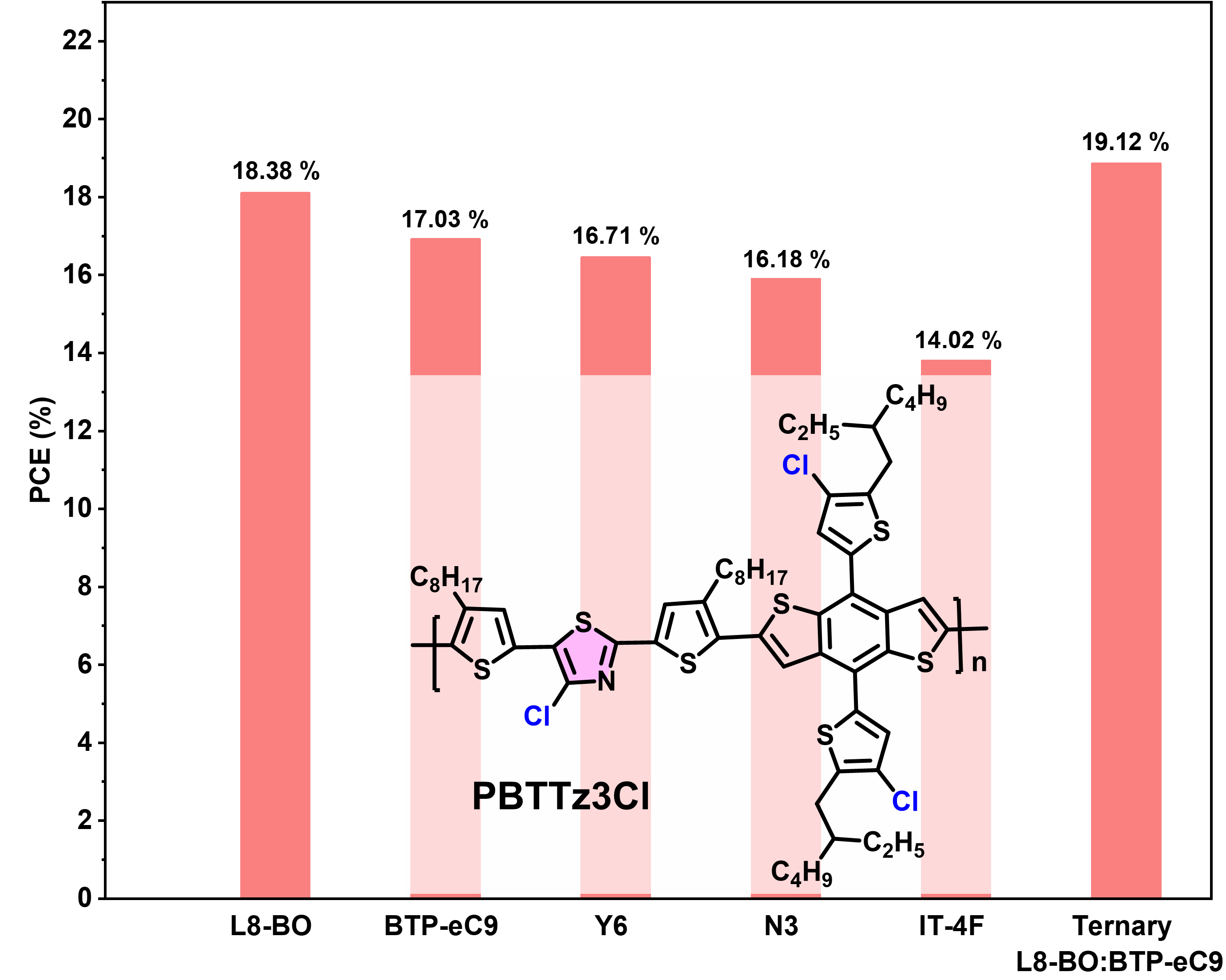 图1基于PBTTz3Cl和多种SMAs材料制备器件的效率情况