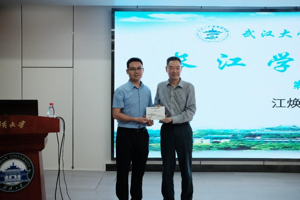 报告开始,由科学技术发展研究院平台条件与成果管理处副处长、至尊国际 沈晓教授为江焕峰颁发了“长江学术论坛”纪念证书。