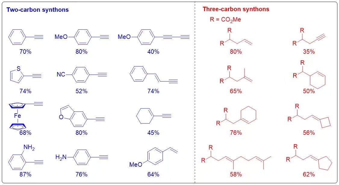 该方法在温和条件下不仅实现了不同环张力的开环,并且能够实现多种多样的官能团化,从而大大的拓展了该方法的实用性(图3)。