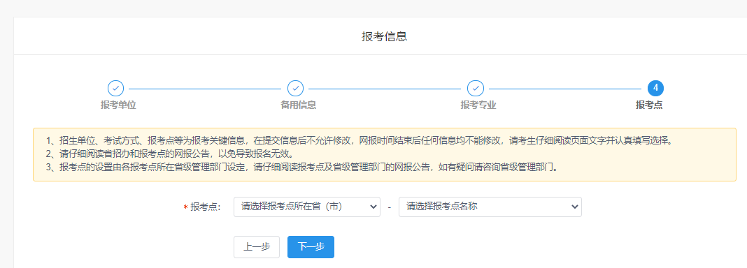 3.考生要对本人网上报名信息进行认真核对并确认。经考生确认的报名信息在考试、复试及录取阶段一律不作修改,因考生填写错误引起的一切后果由其自行承担。