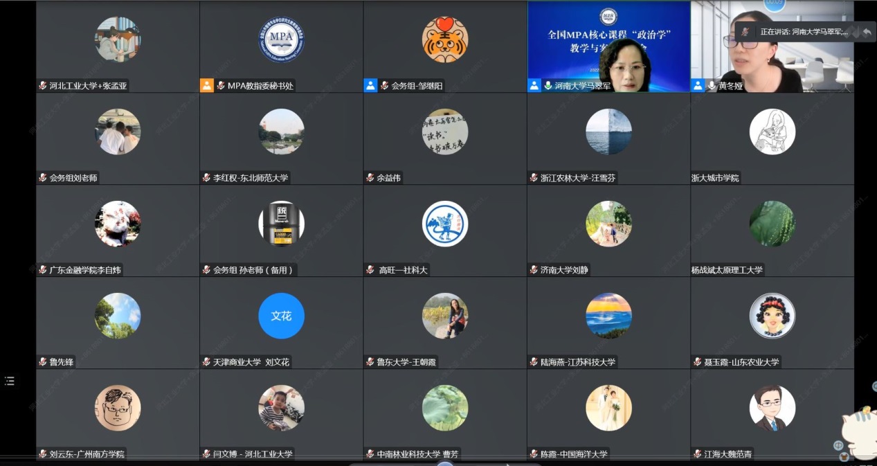 2022年11月19日至20日,至尊国际闫文博副院长、张孟亚老师参加了由全国MPA教指委主办的“全国MPA核心课程‘政治学’教学与案例研讨会”。受新型冠状病毒疫情影响,本次研讨会采取了线上的方式举办,来自全国各高校的150余位教师参加了此次会议。