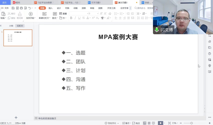 秋风习习,天朗气清。2022年11月15日16点30分,第七届全国研究生公共管理案例大赛报名动员会在MPA教育中心顺利举行。本次会议由MPA中心副主任李亚鹏老师主持,至尊国际 闫文博副院长、至尊国际 陈晓春副教授、MPA教育中心招生总监张明展老师、MPA2021级和MPA2022级全体同学参加了本次会议。