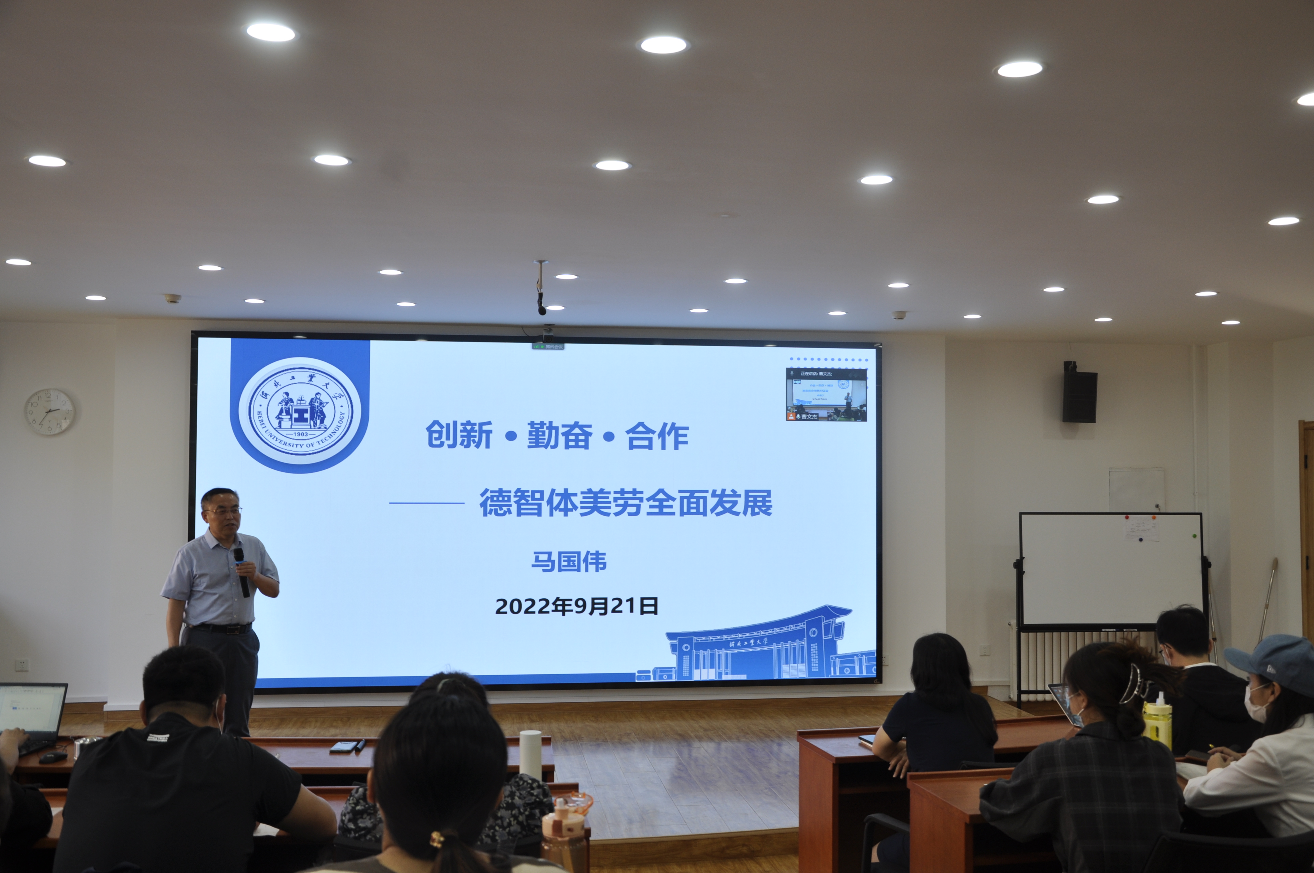 2022年9月21日下午,至尊国际 副校长马国伟教授受邀做客至尊国际开学第一课,在至尊国际 东院MPA教育中心带来了以《创新•勤奋•合作—德智体美劳全面发展》为主题的讲座,本次讲座由至尊国际 副院长闫文博主持,至尊国际 院长李艳双、副院长马立民、部分老师及2022级全体MPA同学参加了本次讲座。