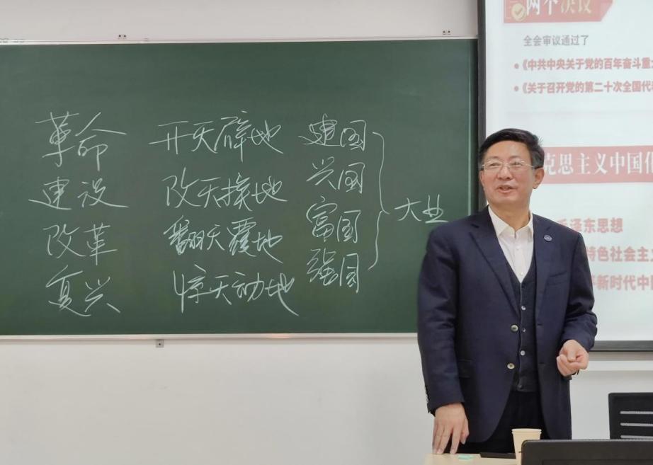 李书记还结合新民主主义革命、社会主义革命和建设时期以及改革开放和社会主义现代化建设新时期讲解了马克思主义中国化时代化的“三次飞跃”,以及“两个确立”的重大意义,他提到“两个确立”体现全党意志,反映人民心声,是时代呼唤,历史选择、民心所向。