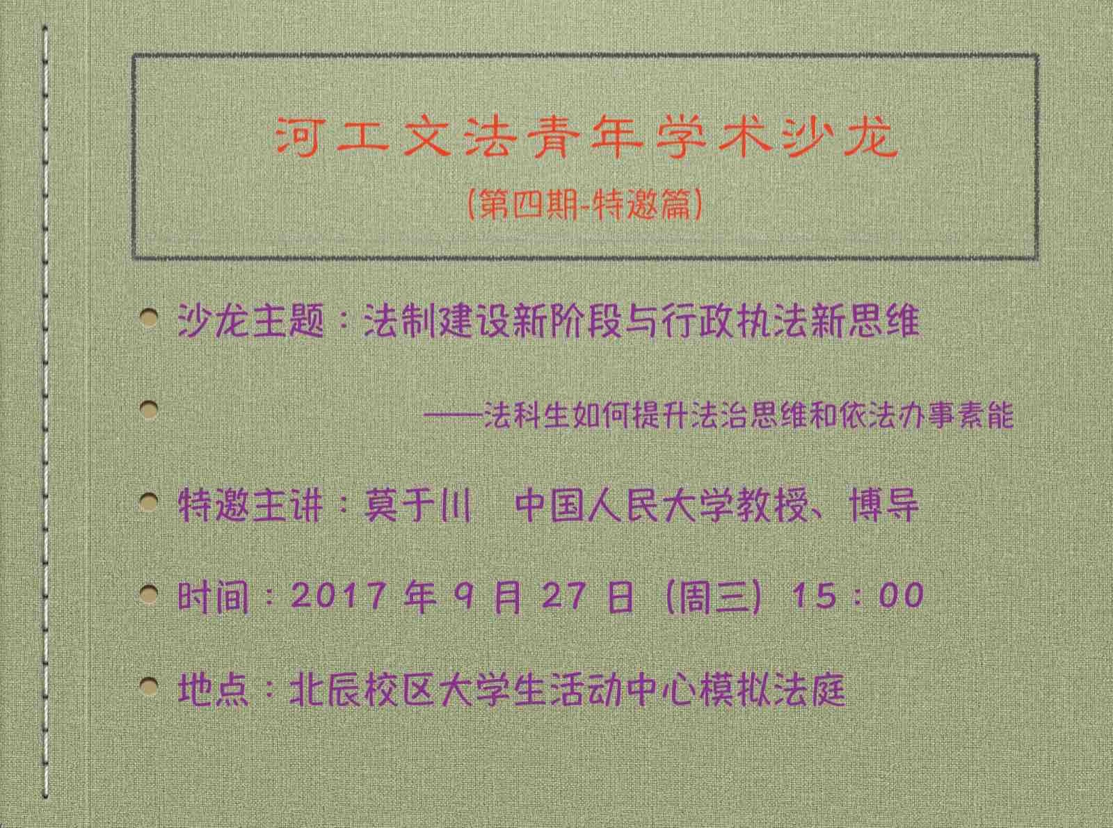 莫于川,现任中国人民大学教授、博士生导师、宪政与行政法治研究中心执行主任、中国行政法研究所所长,主要从事宪法学与行政法学的教学科研工作。主要社会职务:中国行政法学研究会副会长兼法治政府建设专业委员会副主任。主持和参与完成社科研究课题30余项,出版专著、教材40余种,发表学术论文、研究报告300余篇,获科研成果奖20余项。承担过数十项国家立法和地方立法的研究起草工作。
