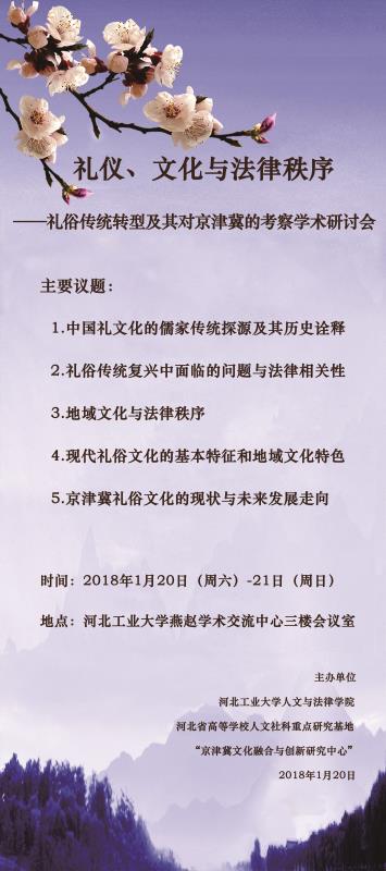 学术会议预告:礼仪、文化与法律秩序——礼俗传统的转型及其对京津冀的考察学术研讨会
