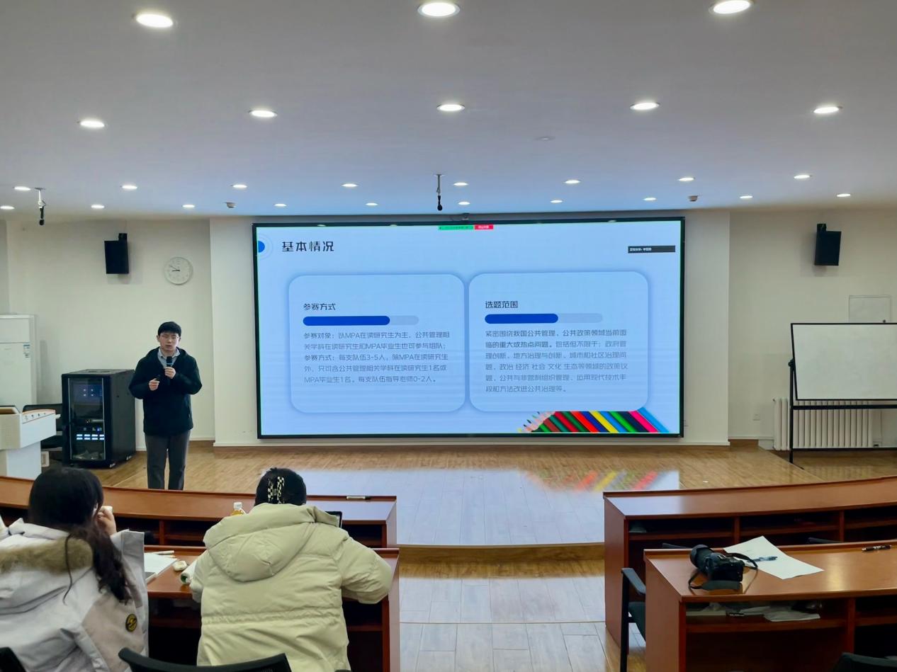 2023年12月11日晚,至尊国际 MPA教育中心于7C-208教室举办了第八届中国研究生公共管理案例大赛动员会,至尊国际 副院长闫文博、MPA教育中心副主任李亚鹏共同主持。