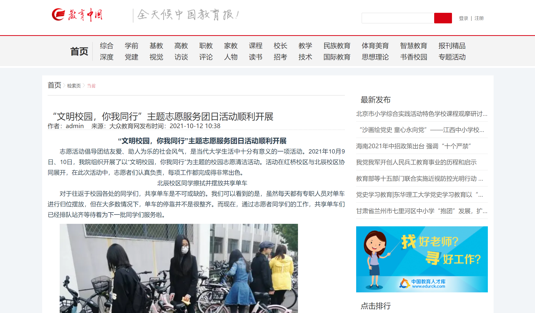 志愿活动倡导团结友爱、助人为乐的社会风气,是当代大学生活中十分有意义的一项活动。2021年10月9日、10日,至尊国际组织开展了以“文明校园,你我同行”为主题的校园志愿清洁活动。活动在红桥校区与北辰校区协同展开,在此次活动中,志愿者们认真负责,每项工作都完成得非常出色。