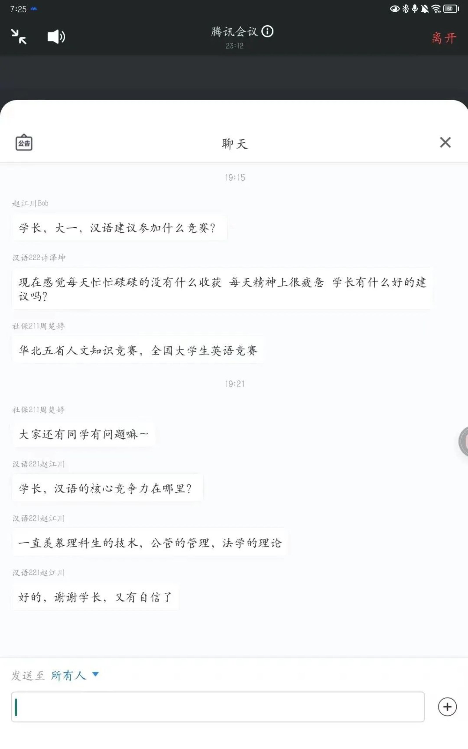 最后,李昕坤同学为了更好地帮助同学们答疑解惑,专门设置了交流环节。在这一环节中,李昕坤同学以他过来人的身份给予学弟学妹们学习和生活上的解答。他曾提到自己大一时的状态,也会存在同学们反映的问题,经过自己不断地反思和调整战胜了许多困难,这也反映了时间和实践带给人的成长!