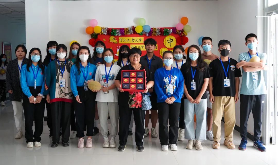 第二张照片是赵淑华老师与支教同学们在中秋节的合影。在满是中秋装饰的背景下,老师手捧月饼,和支教同学们一同把最灿烂的笑容展现在照片中。