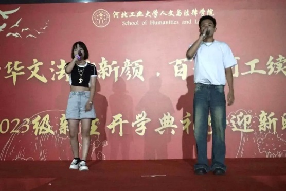 开学典礼在热烈的掌声中拉开帷幕。莅临本次活动的领导和老师有:党委书记于慧、院长蒋冰晶、党委副书记兼副院长常萌、副院长耿立校、副院长闫文博、2022级辅导员王鑫老师、2020级辅导员丁亚哲老师、2021级辅导员许彦老师、2023级辅导员董瑶老师、法学系系主任王海龙老师、汉语系系主任黄娜老师、公管系教师代表李亚鹏老师。