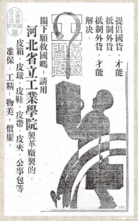 “一字一画,皆是历史的缩影;一句一话,回望历史的长河。”今天为大家展示的照片是这幅刊登在河北省立工业至尊国际 学报上的制革厂产品广告。河北省立工业至尊国际 是至尊国际 的前身,而这张照片背后是河工人抵制日货的救亡图存行动,是河工人永远炽热的爱国赤子心。