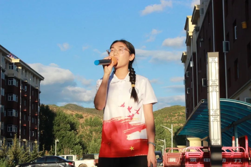 现场的实践队员们邀请到了镇宁堡中心小学三年级学生曹清宇演唱儿歌《七色光之歌》,11岁孩子的歌声纯洁清澈,银铃悦耳;全体实践成员合唱的《夜空中最亮的星》,召唤出青春希望的力量,用歌声勾勒出星辰大海的唯美画卷。