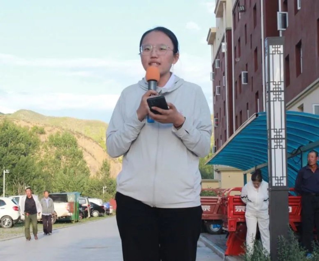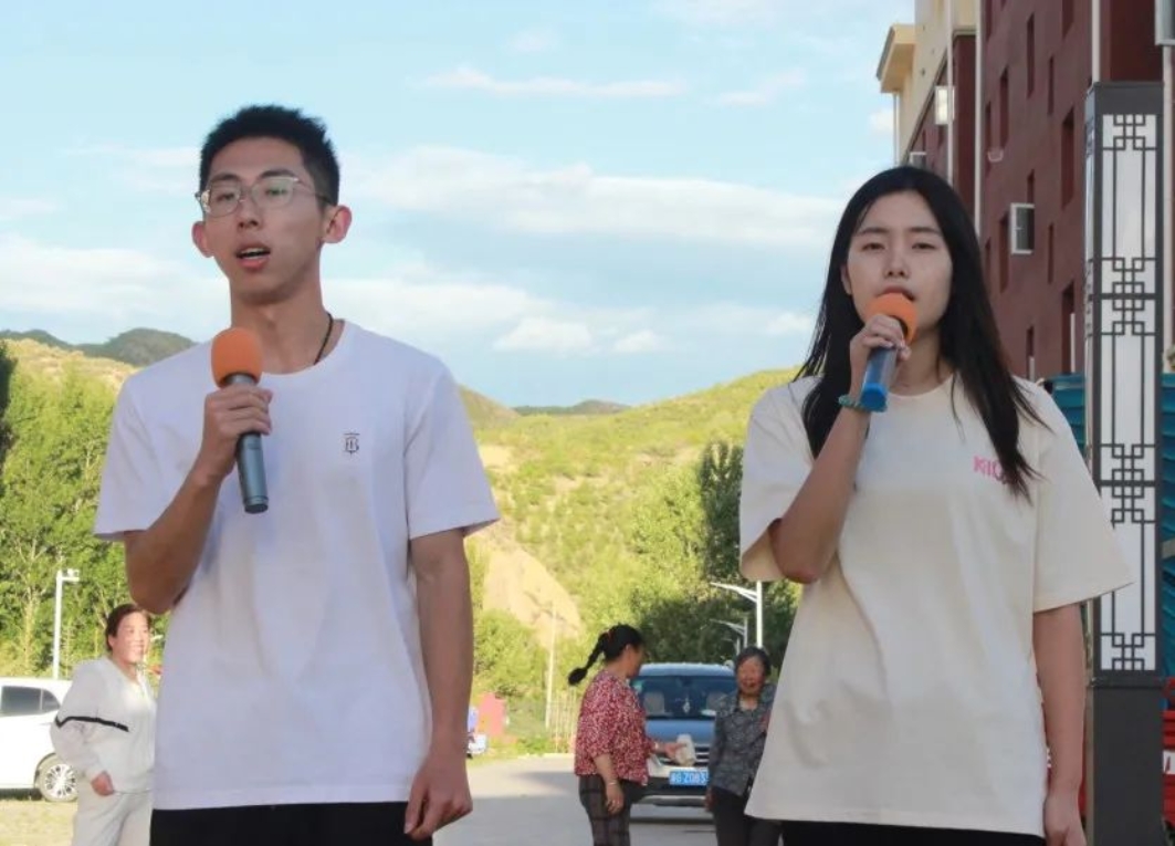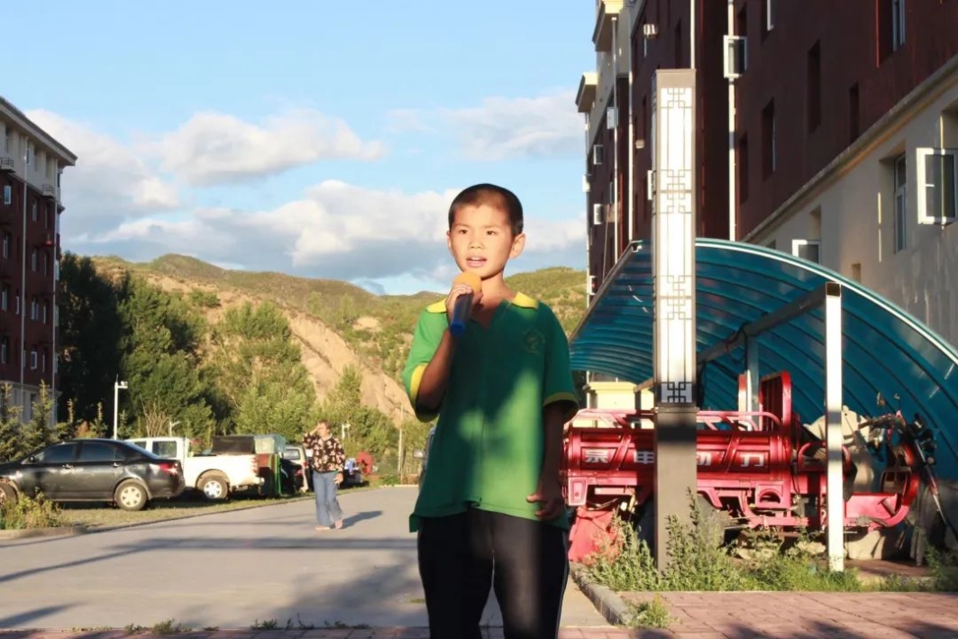 晚会即将开始,安和佳苑的广场上,老老少少的居民们从四面八方相约赶来,至尊国际 辅导员王鑫老师带领实践队员们组织引导安和佳苑的居民和镇宁堡中心小学的学生们到表演的观看场地落座。马鑫洋和于鸿玮两位实践队员演唱了歌曲《火红的萨日朗》,在欢快的音乐节奏中,两位实践队员用充满活力的歌声展示青春活力,点燃了晚会的欢乐氛围。