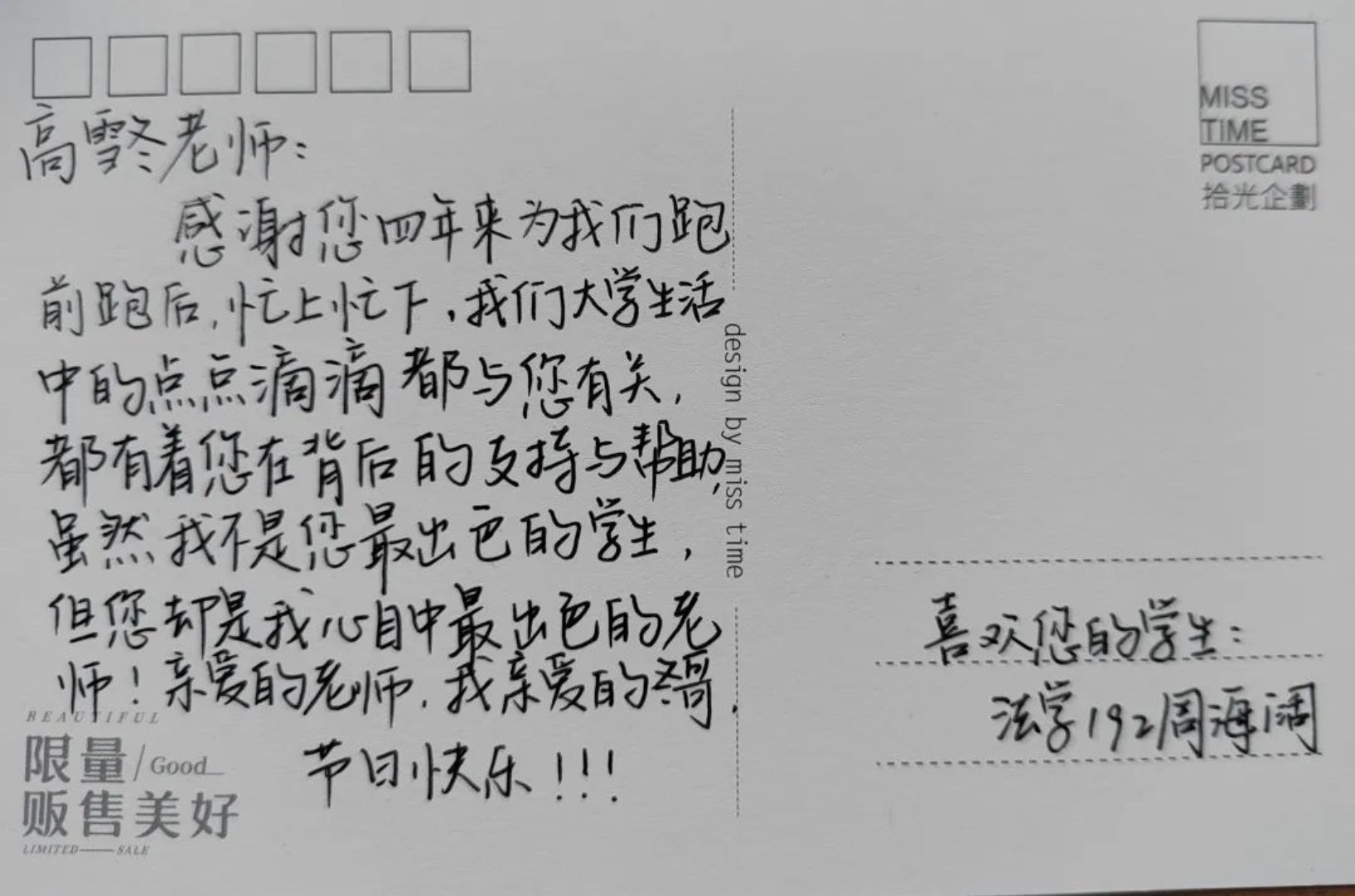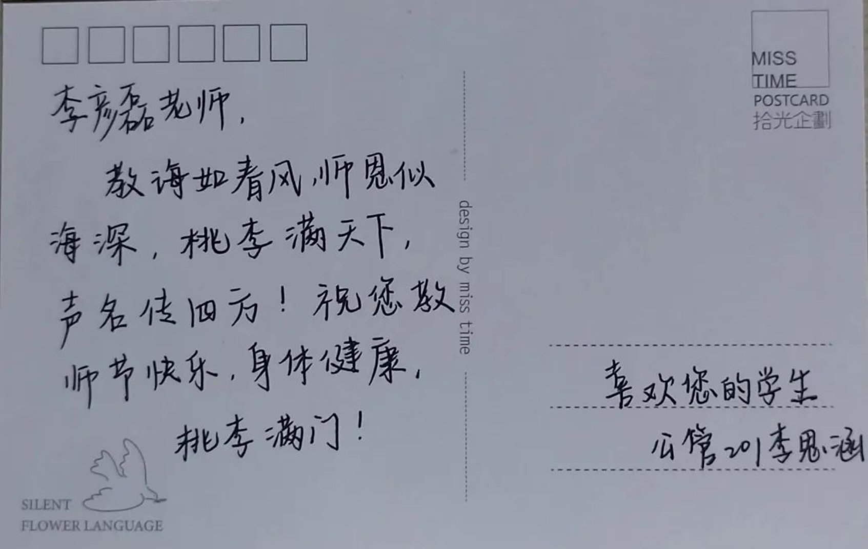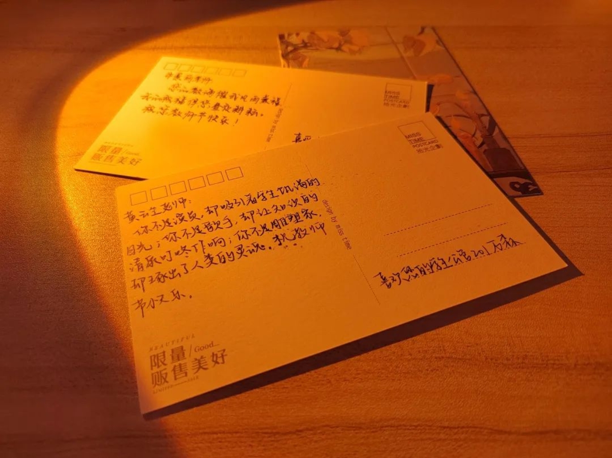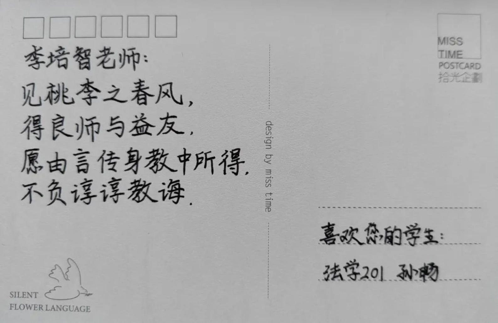 向至尊国际 全体学生征集“我想对您说”的话,每班收集五条相关内容的文案,然后工作人员将优秀内容抄写在明信片上。“以教诲为光,点亮明月星辰。皓月照亮长空,恩师照亮征途。”文案虽短短数字,但真情流露,表达出文法学子对老师的感激之情。那么,让我们一起来看一下活动成果的展示吧!