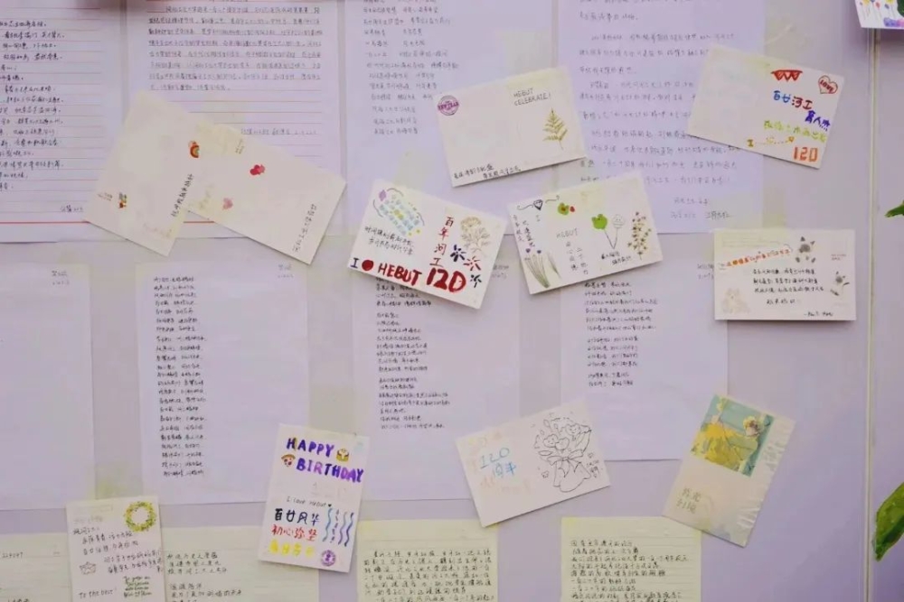云雨浸润青城岁月,积淀下深厚底蕴;风霜打造今日辉煌,唱响出精彩华章。年轮转过,你成就了我,我延续了你。大家都有着独属于自己的河工大记忆,都有着对母校最真挚热烈的感情。一张张DIY贺卡,倾诉了大家内心对母校的万千情谊,为学校百甘献上这份珍贵的贺礼。活动现场上挤满了人群,同学们排起了队伍,都想通过贺卡送上自己的祝福。一张张小小的贺卡,承载着我们对母校深深的爱意。