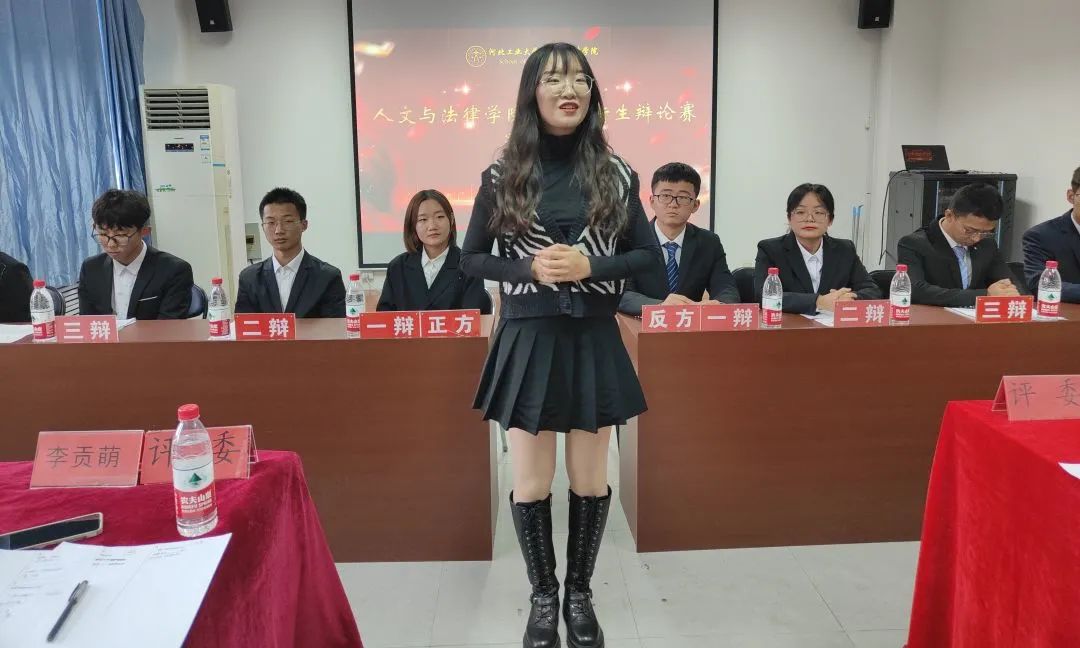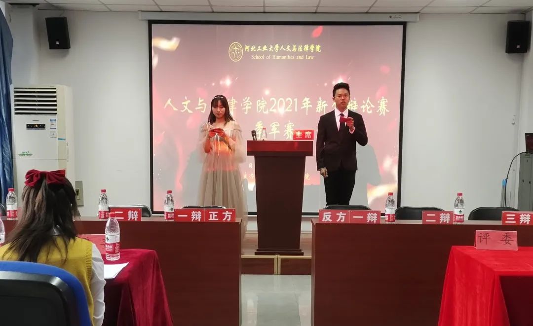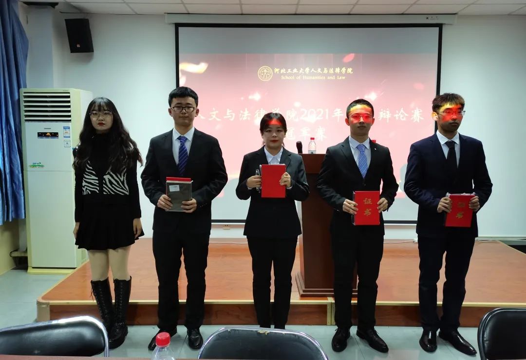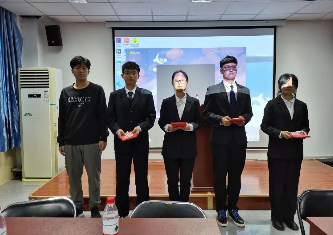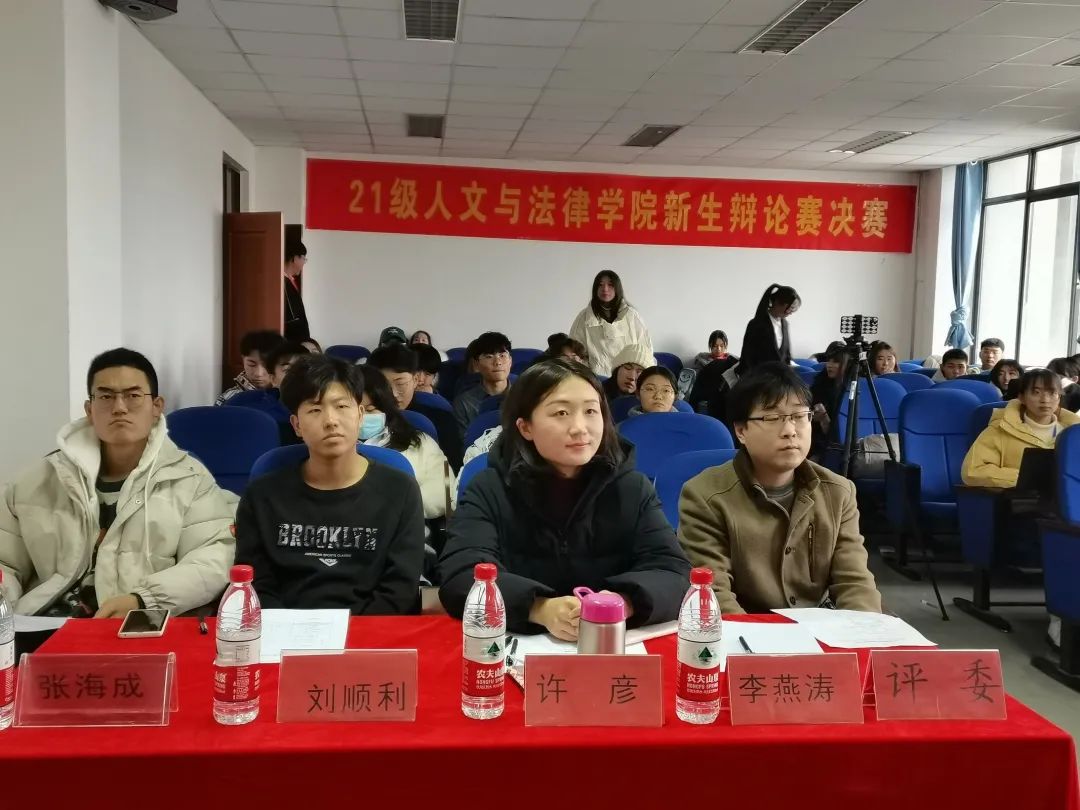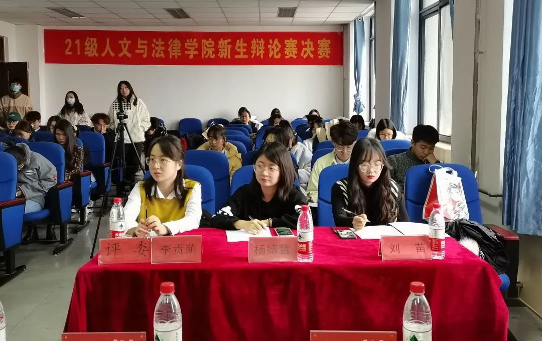 评委团成员有:21级校辩论队队长、20级文法求知辩论队队长李贡萌,20级文法求知辩论队队长刘顺利、杨婧哲, 21级校辩论队队长、19级文法求知辩论队优秀辩手刘苗,19级文法求知辩论队优秀辩手张海成。