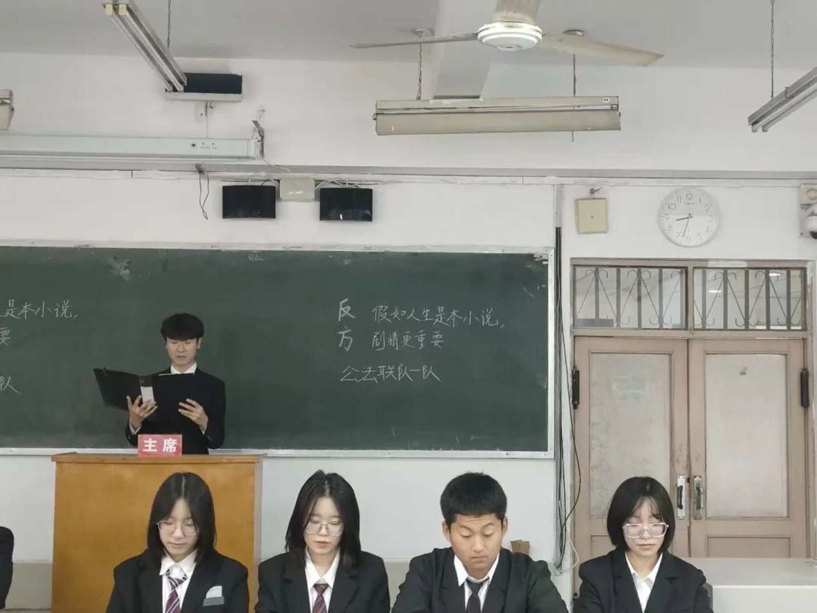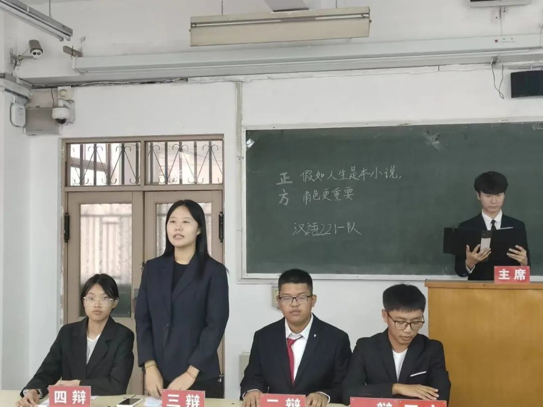 “人生是一本特殊的书,我们既是作者,又是读者。”正、反两方把人生放在小说框架之下,针对“假如人生是一本小说,角色重要还是剧本重要”这一辩题展开辩论。正方认为剧情是由角色创造的,“没有自我,谈何人生”,角色的选择造就精彩人生;反方认为剧情是小说的内核,是它赋予了角色精彩的人生,走好人生剧情是打破固有人设的方法。经过激烈的交锋,最终双方打成平手,反方二辩孙塬璐被评为“最佳辩手”。