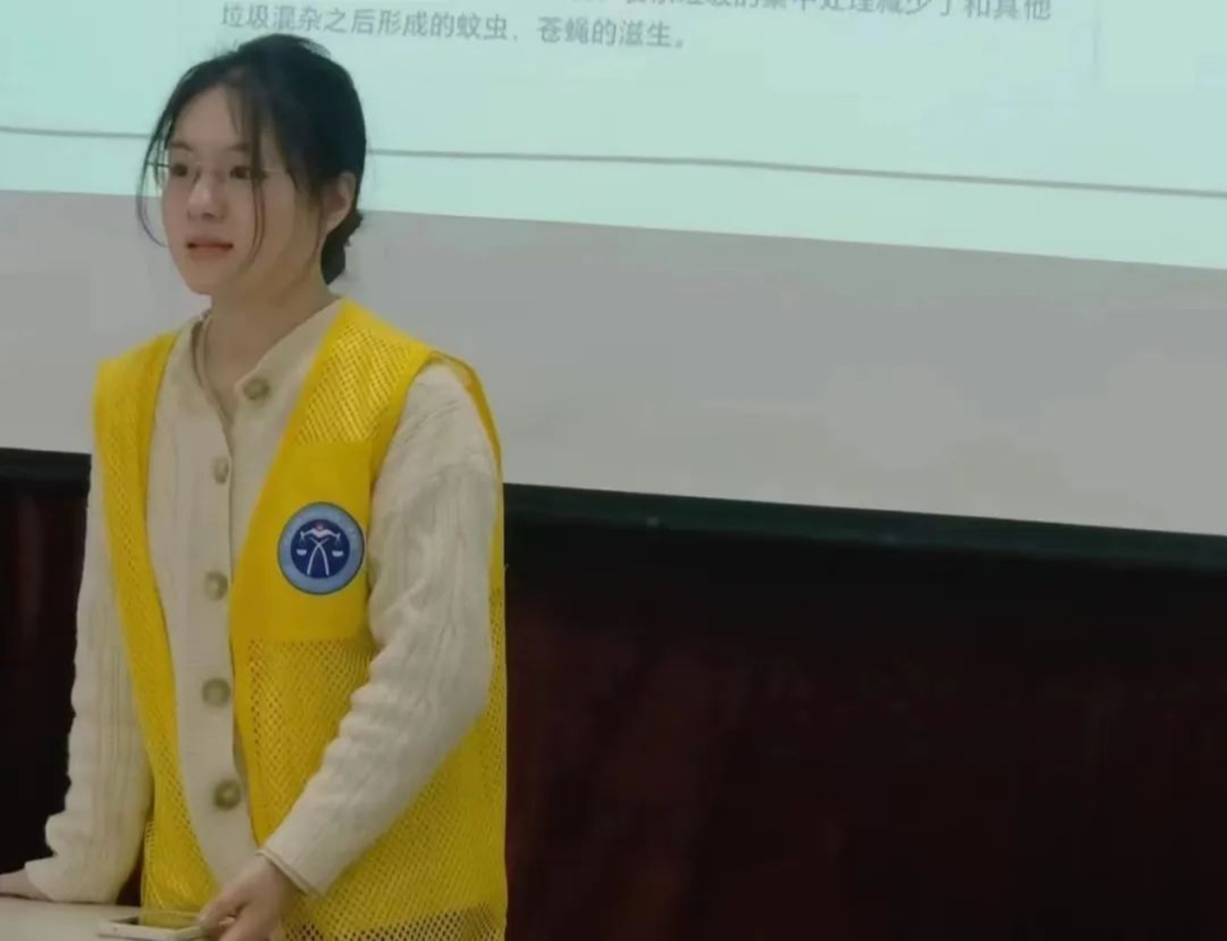 “垃圾分类,从我做起”主题内容由袁饶芯源同学向在座的居民讲解。她首先解释了当代中国大力推进垃圾分类的原因,然后亲切地向社区的老人们讲述了生活中的垃圾该如何分类,并举例说明垃圾的不同类型,最后她阐释了垃圾分类的好处和意义并呼吁大家积极进行垃圾分类,共建绿色家园。