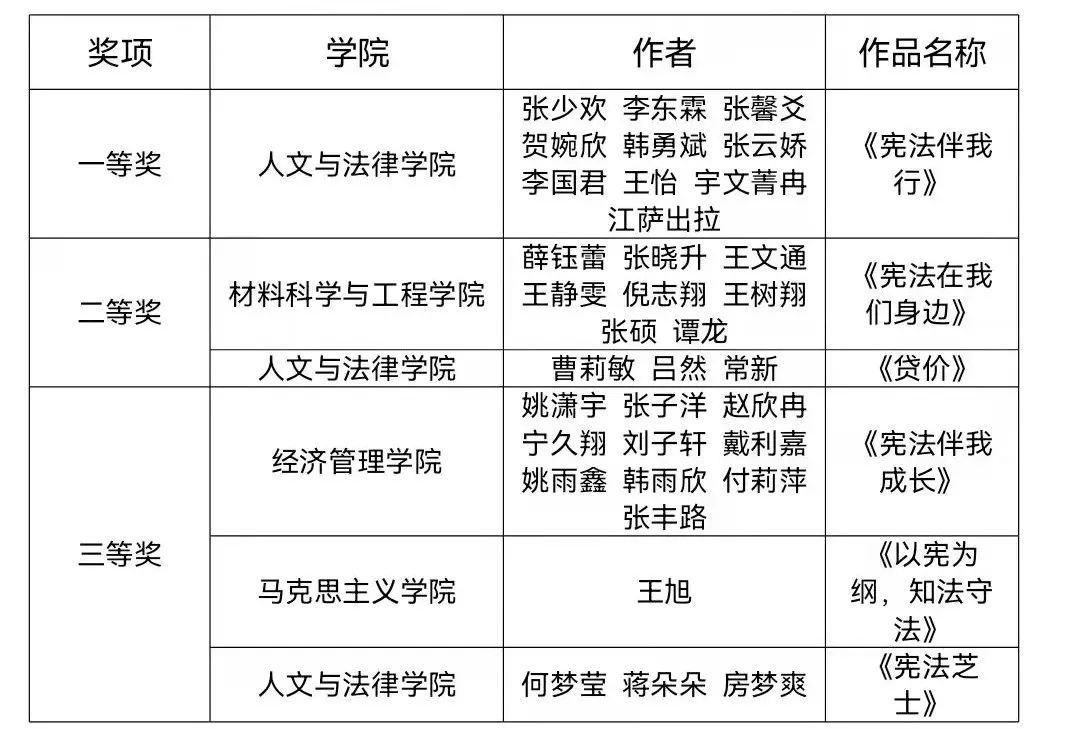学校的相关组织还举行了“宪法走近你我”征文活动和“我与宪法”微视频征集活动。活动聚焦于学生对宪法学习的感悟、对宪法与生活联系的认识,增进了学生与宪法之间的联系与认同感。