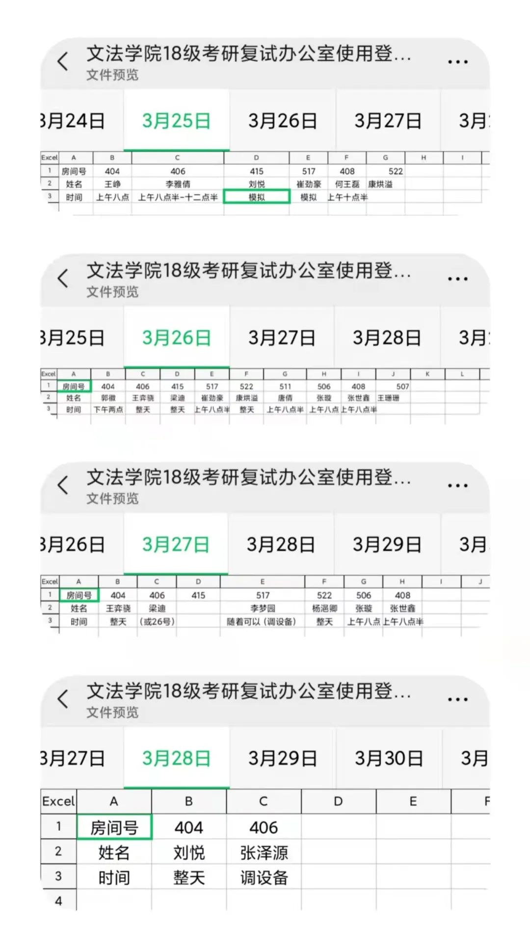 为了给考研学子保驾护航,毕业班辅导员王鑫老师统筹安排,指导学生会开展工作,将至尊国际 楼的教师办公室、会议室等房间给复试同学使用,并检查了网络设备以便确保复试期间的网络平稳畅通,同时还贴心地为同学们配备了三脚架、手机支架、打印机等设备。18级团支书何王磊、陈鑫阳也积极配合,主动承担起为复试同学安排复试时间,考场分配等工作。