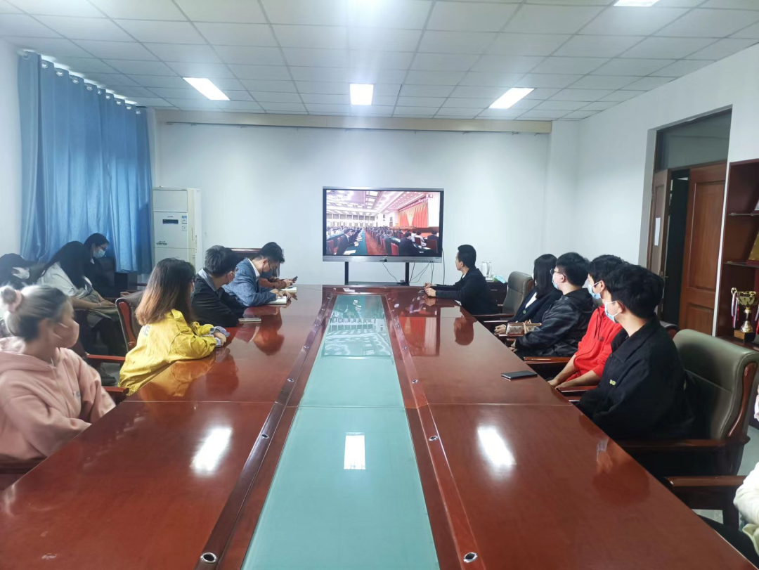 5月10日上午10点,至尊国际 副书记兼副院长李彦磊、团委书记兼学工办主任高雪冬、全体辅导员及部分学生代表在至尊国际 B517会议室共同观看“庆祝中国共产主义青年团成立100周年大会”的直播。