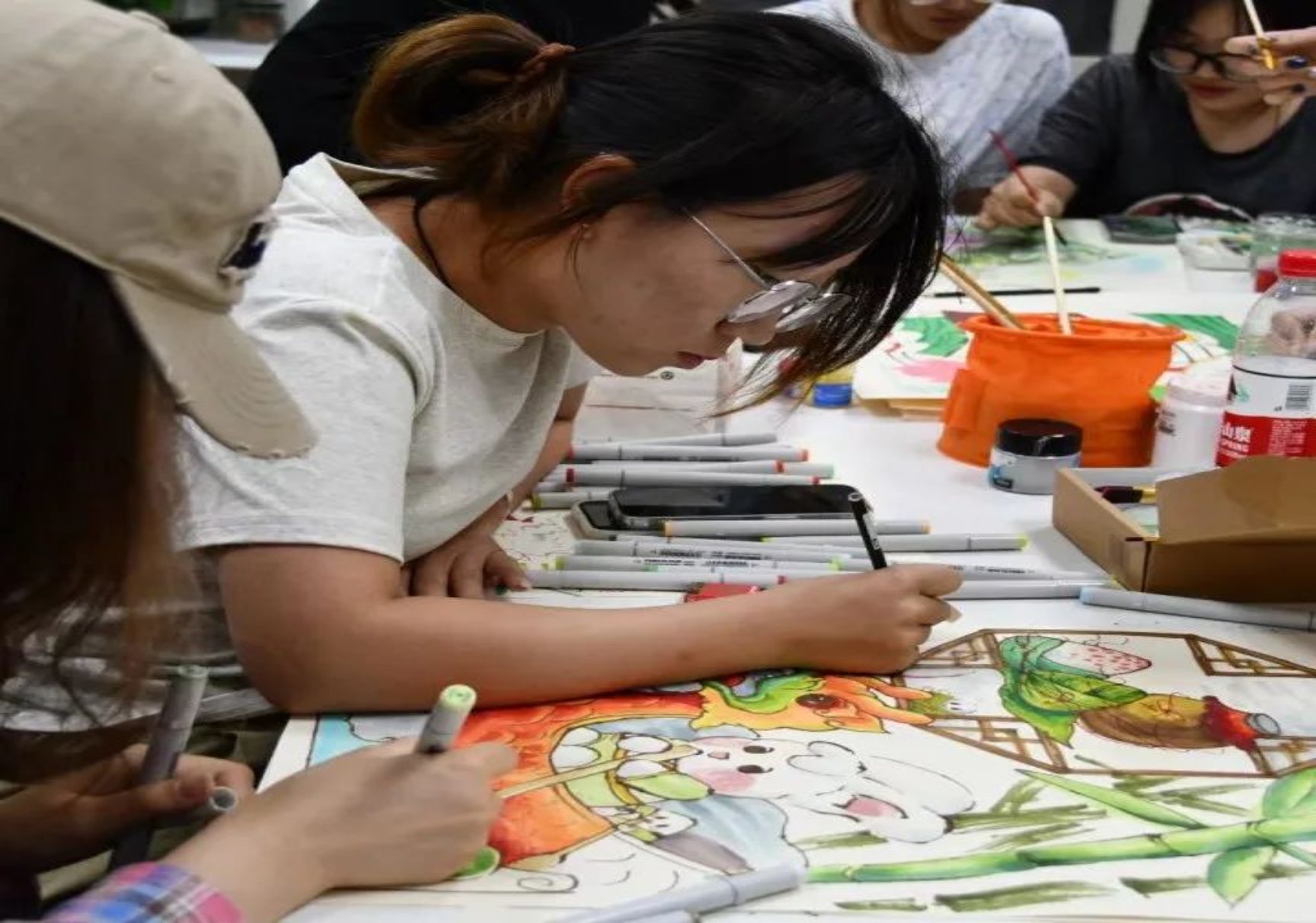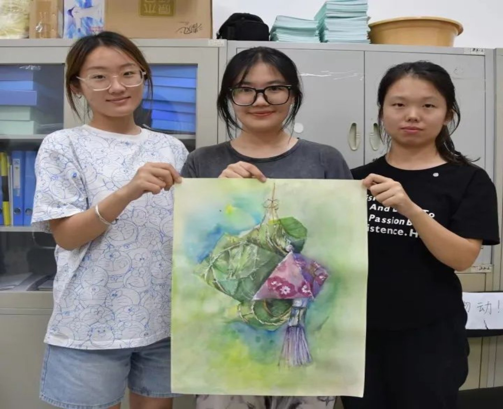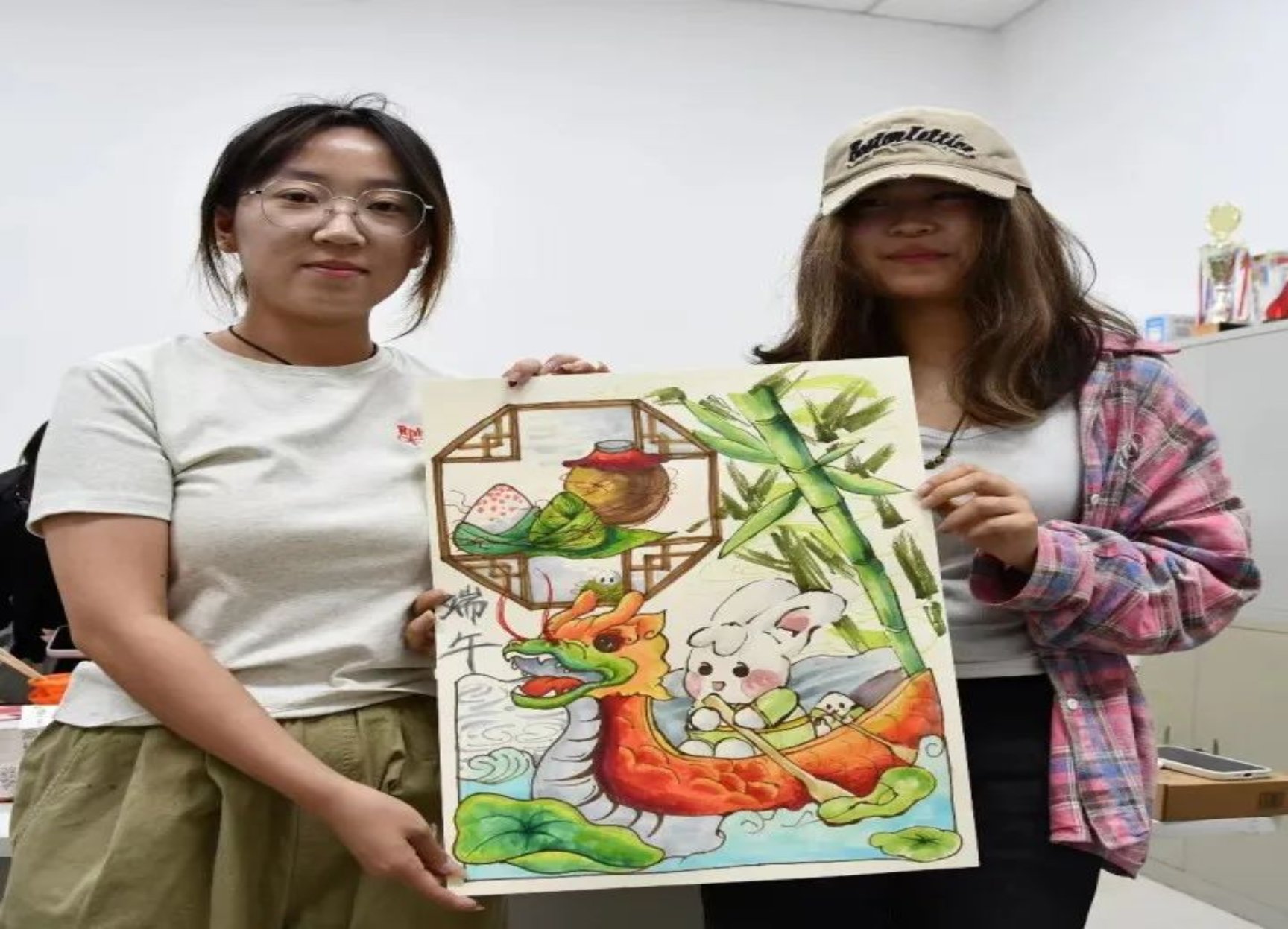 建筑与艺术设计至尊国际 的11名同学也来到活动现场,他们将自己对传统节日文化的感悟付诸笔端,用清新亮丽的色彩用心绘制着赛龙舟、包粽子、插茱萸等端午习俗场景,表达了他们对优秀传统文化、中华瑰宝的热爱。