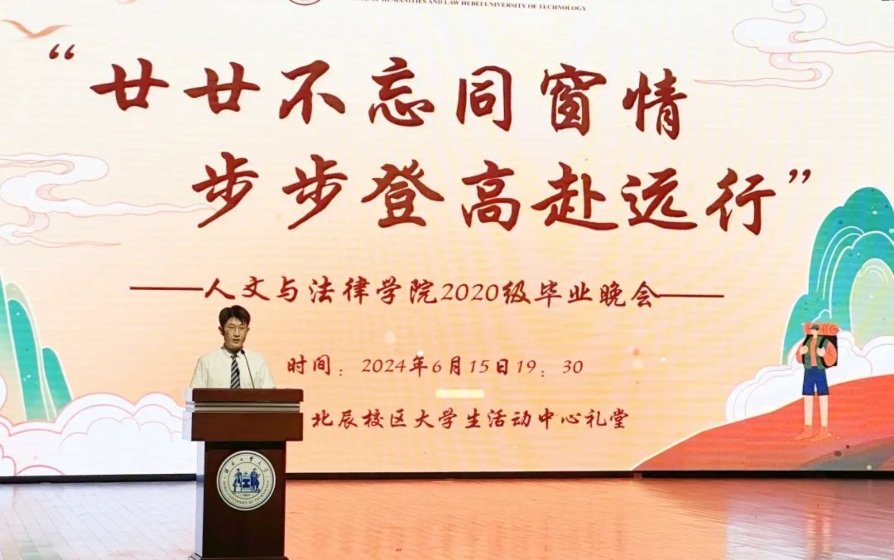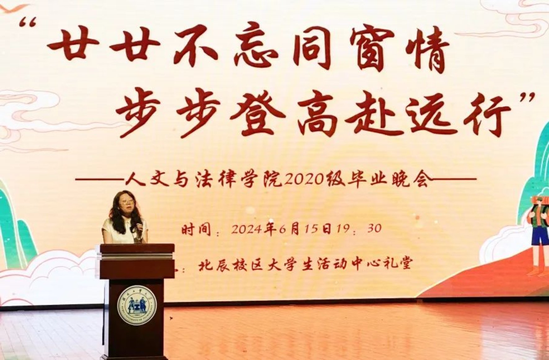 晚会在热烈的掌声中拉开帷幕,首先由蒋冰晶院长上台为晚会致辞。光阴有期,如约而至。蒋冰晶院长回忆了与同学们过去四年的记忆点滴,向即将奔向全国各地、踏上新征程的毕业生们送上了美好的祝愿,希望同学们面对未来人生路上的困难保持坚韧之心,坚定梦想与希望。