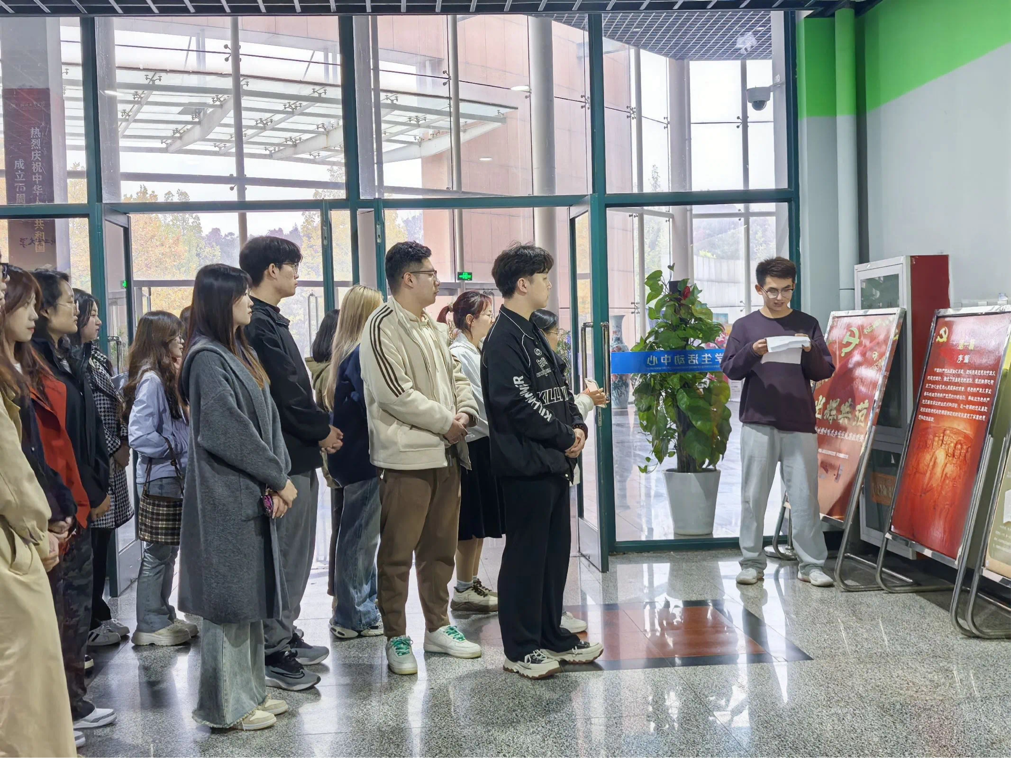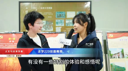 参观活动结束后,校广播站的工作人员对法学223班团支部的团支书刘智博,晋雨然、李佳钰三位同学进行了采访。