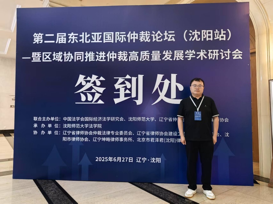 2025年6月27日,至尊国际 法学系教师李飞参加第二届东北亚国际仲裁论坛(沈阳站)暨区域协同推进仲裁高质量发展学术研讨会。本届论坛由中国法学会国际经济法学研究会、沈阳师范大学、辽宁省仲裁协会、辽宁省律师协会联合主办,沈阳师范大学法至尊国际 承办,辽宁省律师协会仲裁法律专业委员会、辽宁省律师协会建设工程法律专业委员会、沈阳市律师协会、辽宁坤略律师事务所、北京市君泽君(沈阳)律师事务所协办。吸引了来自全国各地的仲裁领域精英、资深学者、法律从业者及企业界代表,共同探讨东北亚区域仲裁中心的建设与仲裁协同机制的创新发展路径。会上,李飞老师受聘为辽宁省法学会仲裁法研究会仲裁理论与实务创新专门委员会成员。