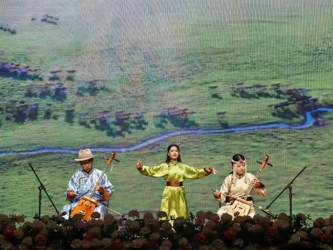 悠扬的呼麦声响起,萨妮姹尔与鲍志鑫奏响《白马》,都乐根随乐起舞。整段表演交织着自然的清旷与生命的力量,将观众瞬间带入天高地阔的草原深处。