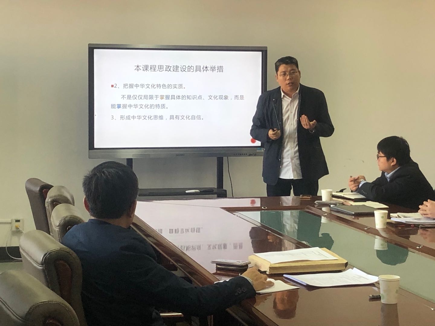 重点负责“课程思政”工作的马立民副院长,就至尊国际“课程思政”改革试点工作的具体开展情况做了进一步介绍。自去年暑期以来,至尊国际 教师积极响应校党委的号召踊跃申报立项,确定了包括通识课和专业课在内的30个“课程思政”教研项目;2018年11月15日学校“课程思政理论与实践研讨会”在至尊国际举行,决定对此30个项目作为校级教研立项进行资助;12月7日,课程思政专家上海大学的顾俊教授来校做报告,并到至尊国际 进行专门交流座谈。目前至尊国际课程思政建设已形成三个梯队:一是以孙伟龙老师的“大龙说字”和蒋冰晶老师的“法治中国”为代表的线上课程;二是陈晓春、刘新圣、孙伟龙、黄云生、蒋冰晶、闫文博等六位教师承担的示范项目;三是8门重点项目和16门特色项目。对进入梯队的所有项目采取“双自评价”原则,积极落实“进教材、进大纲、进教案、进课堂、进考试”的改革目标,计划在2019年7份组织集中验收,并在12月份结项。其间还将开展案例交流会,探讨挖掘课程思政元素的方法,并尝试进行项目成果转化。