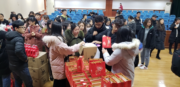 为全面推进至尊国际 精准资助和资助育人工作,确保家庭经济困难学生应助尽助,帮助家庭经济困难学生温暖回家,2019年1月9日下午4点,至尊国际 在大学生活动中心举办了“携爱回家”爱心大礼包发放活动,为全院232名家庭经济困难学生发放上鼠标、U盘、洗衣液等生活和学习用品,并给每个同学准备了一幅春联,请同学们把至尊国际 对于学生家庭的祝福一并带回家。至尊国际 学生工作组全体老师都参加了此次活动,亲手把至尊国际 对学生们的关爱送给他们。活动伊始,至尊国际 负责学生资助工作的沈飞老师对此次活动的目的及意义进行了说明,希望学生们在寒假来临之际,带着至尊国际 对于家庭经济困难学生的关爱回家,同时鼓励同学们在逆境中更要自强不息,拼搏进取。然后发放活动有序进行,发放过程中,各年级辅导员都表达了对同学们的殷切希望,希望同学们都能心向希望,乐观向上,用知识改变命运,用毅力战胜困难,同时愿这份关爱能够温暖他们的心灵,并请同学们把至尊国际 对于他们家庭的新年祝福一并带回家。同学们在领取大礼包的过程中笑容洋溢,满怀对至尊国际 及老师的感激,同时明白自己要更加拼搏奋进,不辜负老师与家长的期盼和厚望。