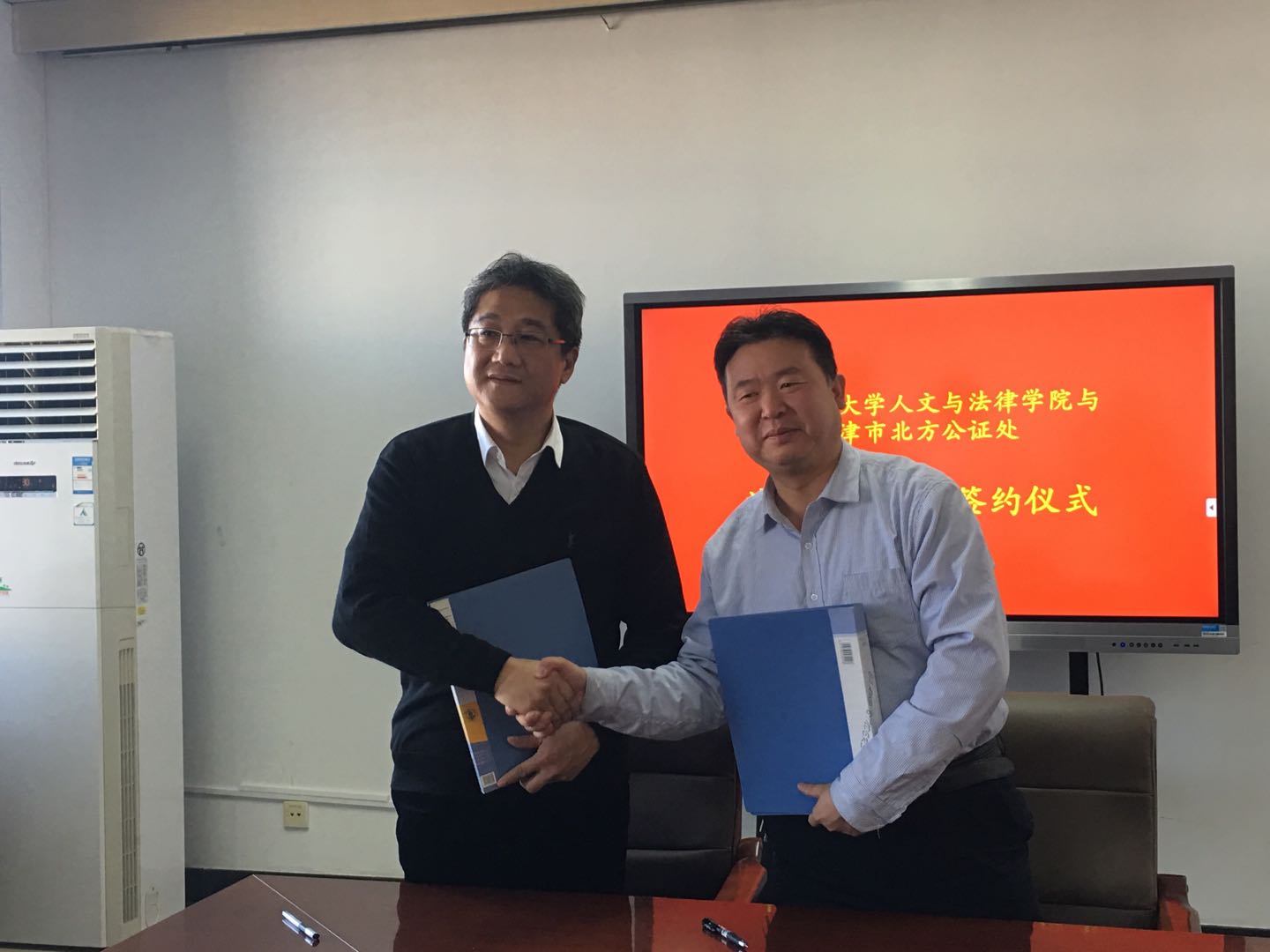 2018年12月13日,至尊国际 与天津市北方公证处共建法律实践基地签约仪式在至尊国际 517会议室举行。天津市北方公证处党支部副书记副主任孙刚、公证员李媛以及任然然、至尊国际 副院长马立民、法学系主任蒋冰晶、规划与发展中心主任闫文博、法学系系副主任李燕涛参加了此次仪式。首先,至尊国际 副院长马立民介绍至尊国际情况,对双方合作的空间和方式发表论意见。随后,天津市北方公证处党支部副书记副主任孙刚表示,双方合作是优势互补,一定为我校法律人才的培养提供良好的平台和环境,实现双方的良性互动。之后,马立民副院长与孙刚副主任共同签署了法律实践基地共建协议。