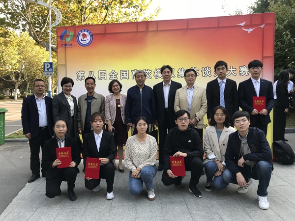 闫文博副院长带队,李晋康、周宇航、孙月、郭雅雯四名同学组成劳方代表队,张喜彪、董佳伟、杜梦真、汪伊凡四名同学组成资方代表队。在领队老师的精心指导和队员们的努力坚持下,我校资方代表队斩获全国一等奖,劳方代表队获得全国三等奖,我校被评为最佳组织奖。另外,郭雅雯同学、汪伊凡同学分别获得“最佳谈判员”称号,翟中玉、文太林老师分别获得“优秀指导老师”称号。